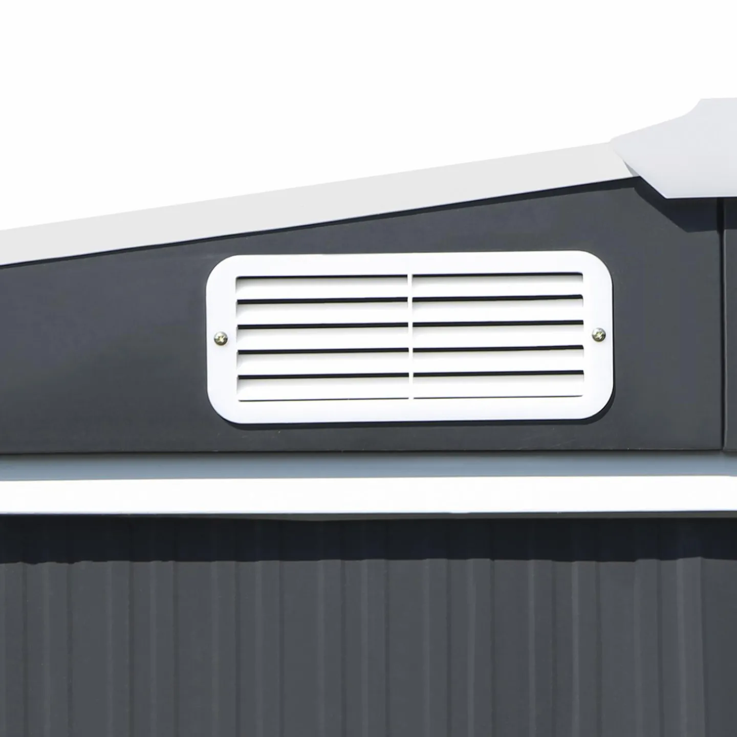 L’abri de jardin gris en acier galvanisé dispose d’une base solide en métal, idéale pour renforcer la structure et fixer selon vos envies un plancher en composite ou en bois (plancher non fourni).