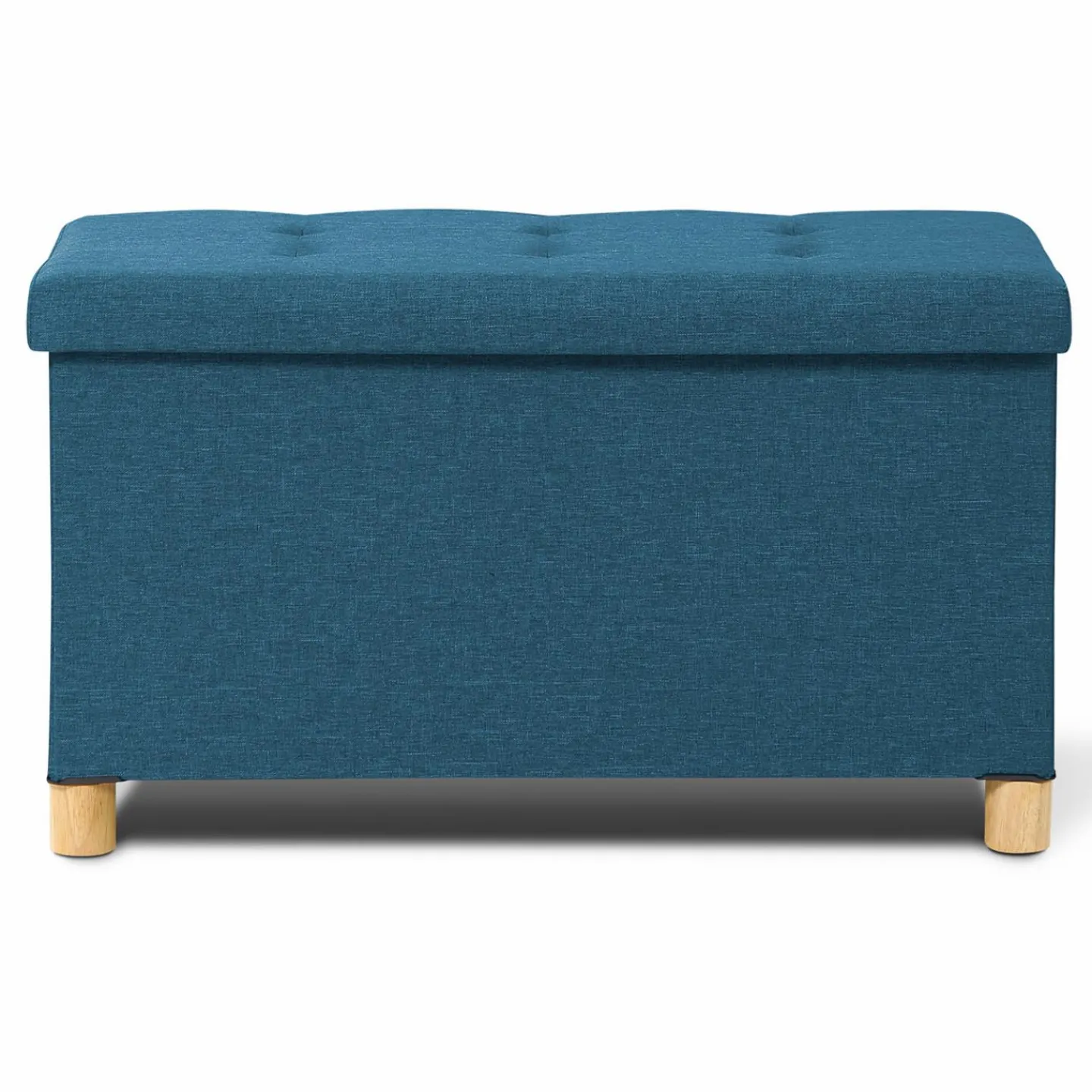 Banc coffre rangement sur pieds 76 cm tissu bleu canard