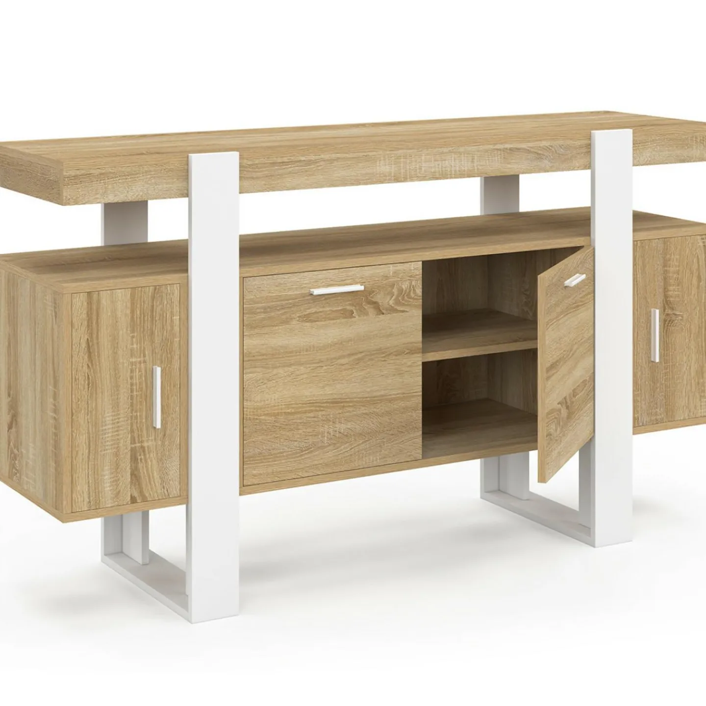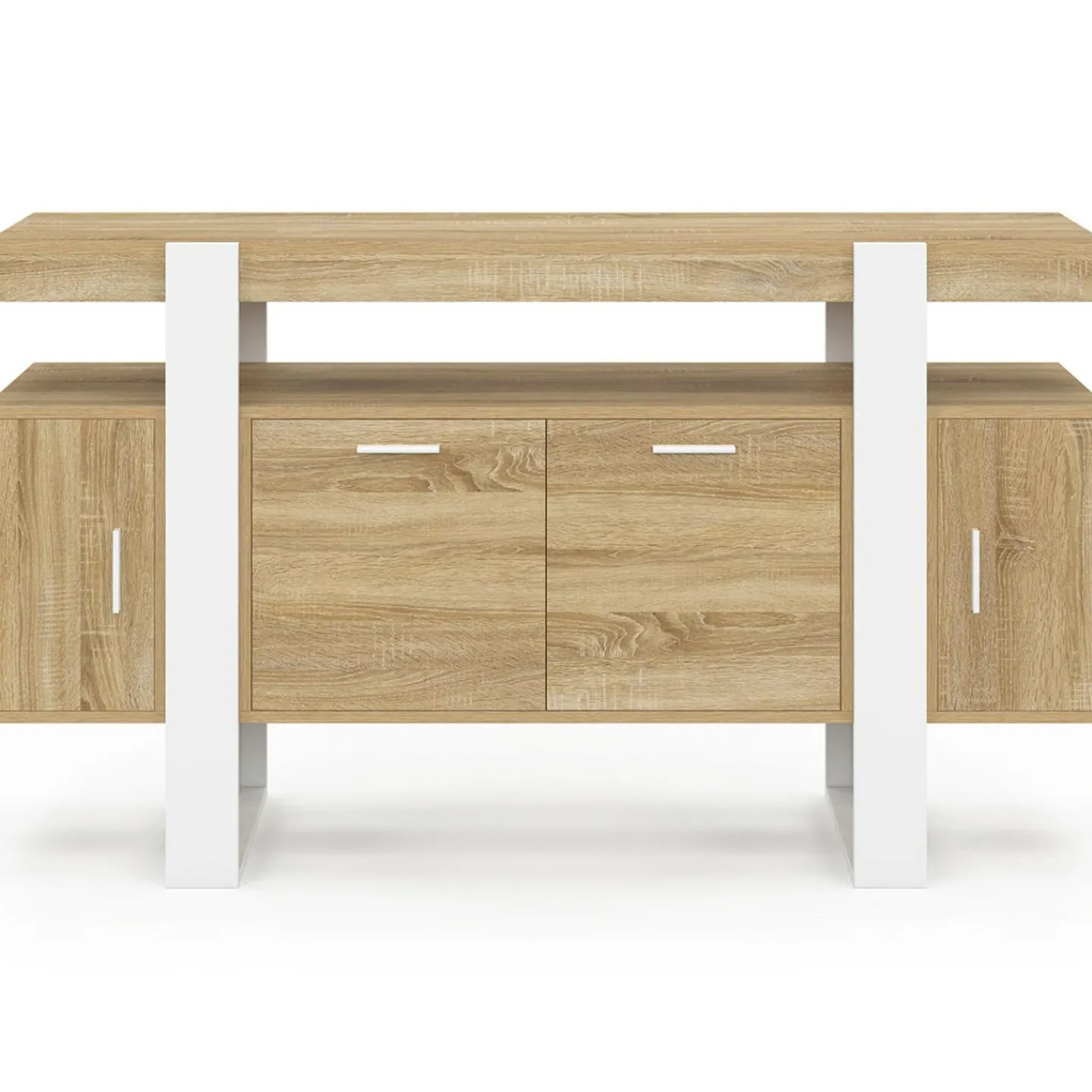 Buffet bois et blanc 4 portes 140 cm*IDMarket Best