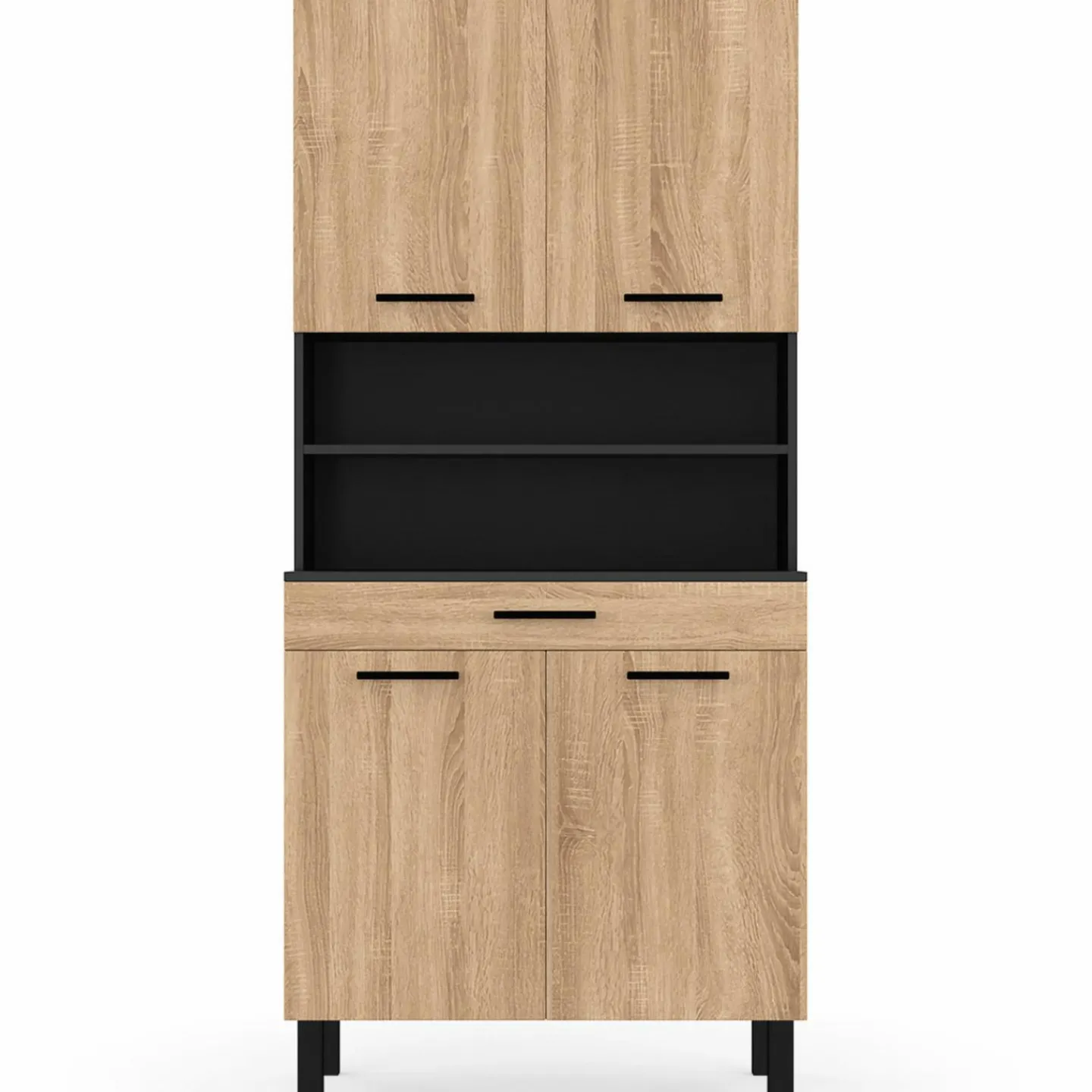 Buffet de cuisine vaisselier noir et bois façon hêtre 80 cm*IDMarket Outlet