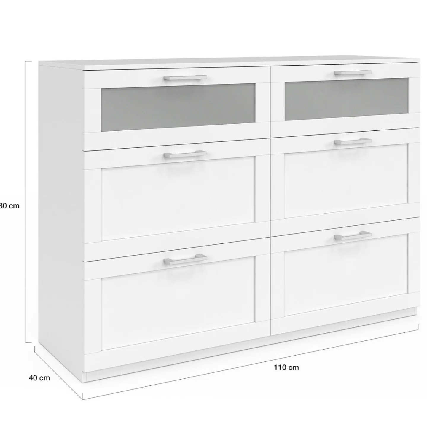 Commode 6 tiroirs VITO 110 cm bois blanc et effet givré
