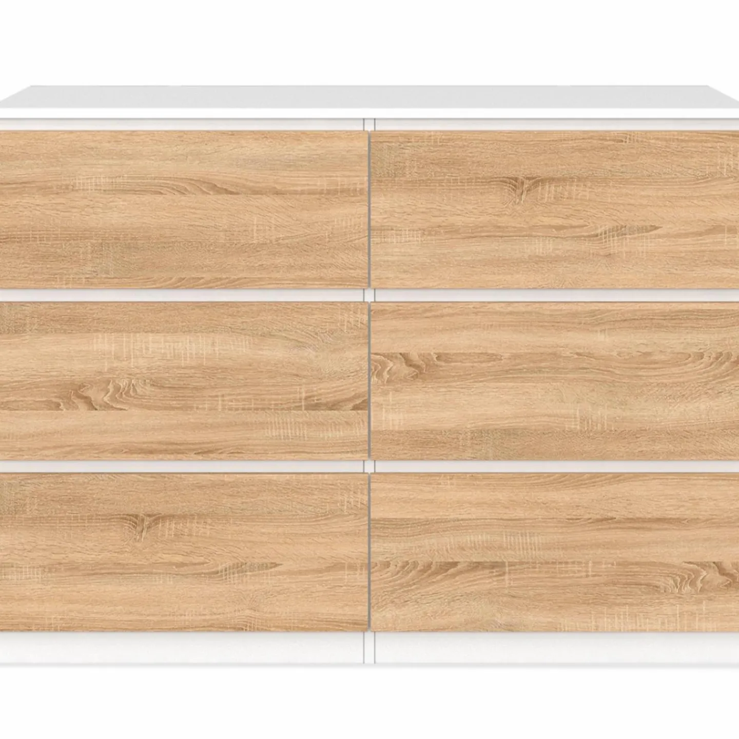 – Commode 6 tiroirs TOMI bois façon hêtre et blanc