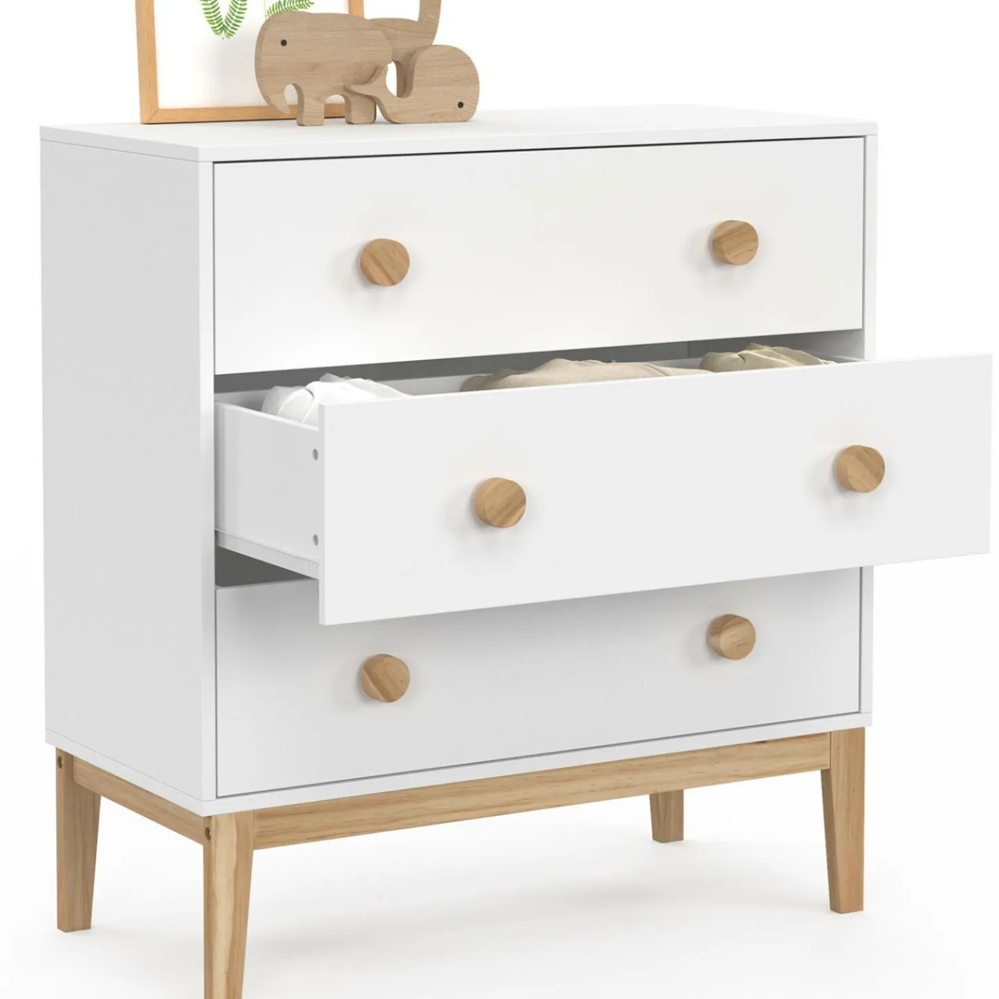 Commode enfant 3 tiroirs JACOB 80 cm blanc et bois
