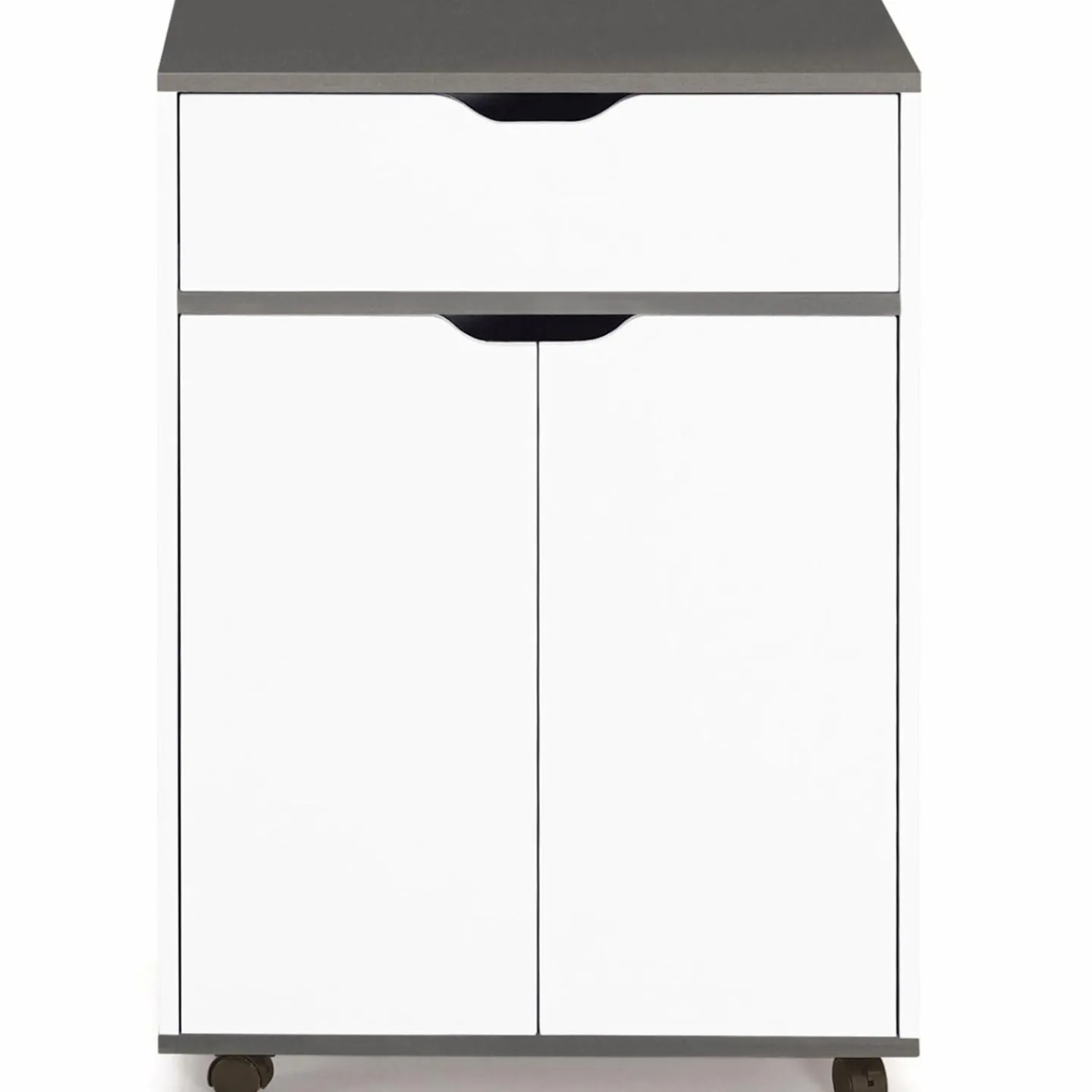 Grâce à son côté bicolore blanc et gris, cette desserte de cuisine à roulettes apporte une touche contemporaine à votre cuisine et se marie parfaitement avec votre décoration intérieure. Ce meuble peut aussi trouver sa place dans une salle de bains, une buanderie ou encore un cellier.