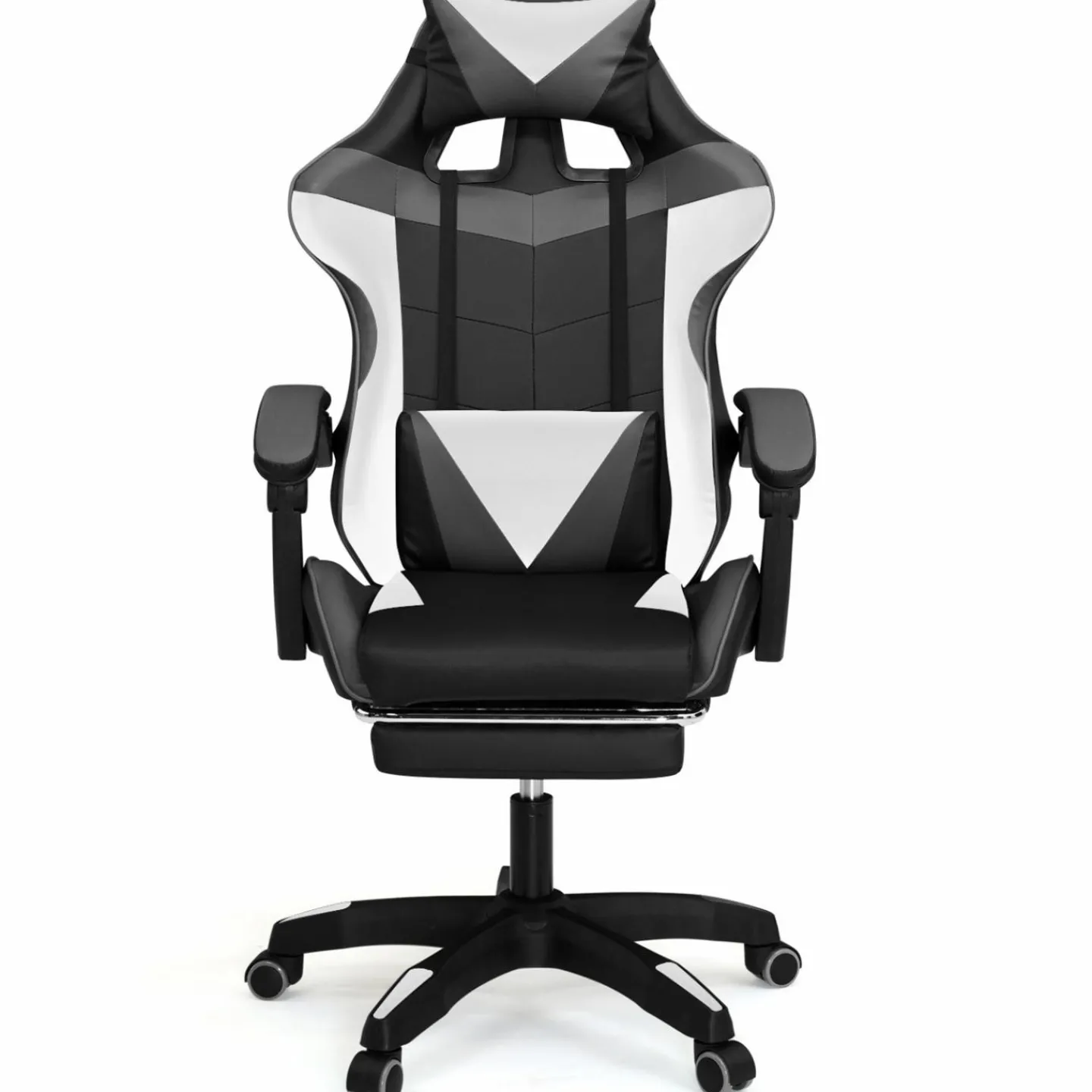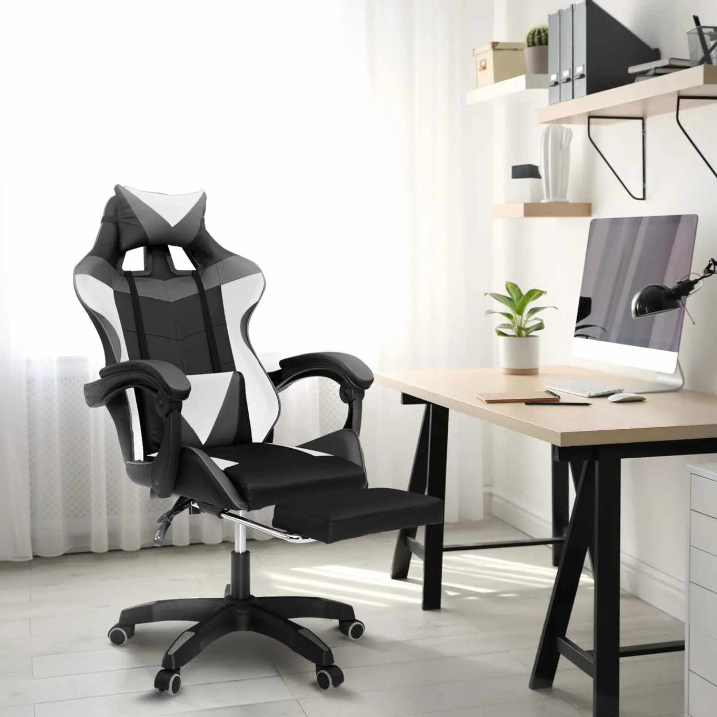 Fauteuil de gaming ALEX réglable avec repose-pied, coussin de tête et coussin lombaire noir blanc et gris