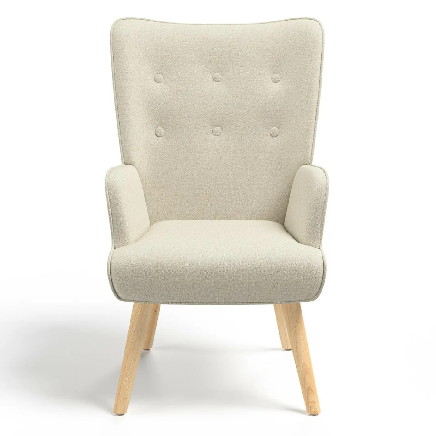 Avec son haut dossier capitonné et son assise moelleuse, vous pourrez profiter d’un fauteuil scandinave pas cher et confortable. Grâce à son design simple mais élégant, il s’intègre parfaitement à toutes les pièces, du salon à la chambre. Découvrez le charme des pieds en bois blond associés au tissu beige ultra tendance.