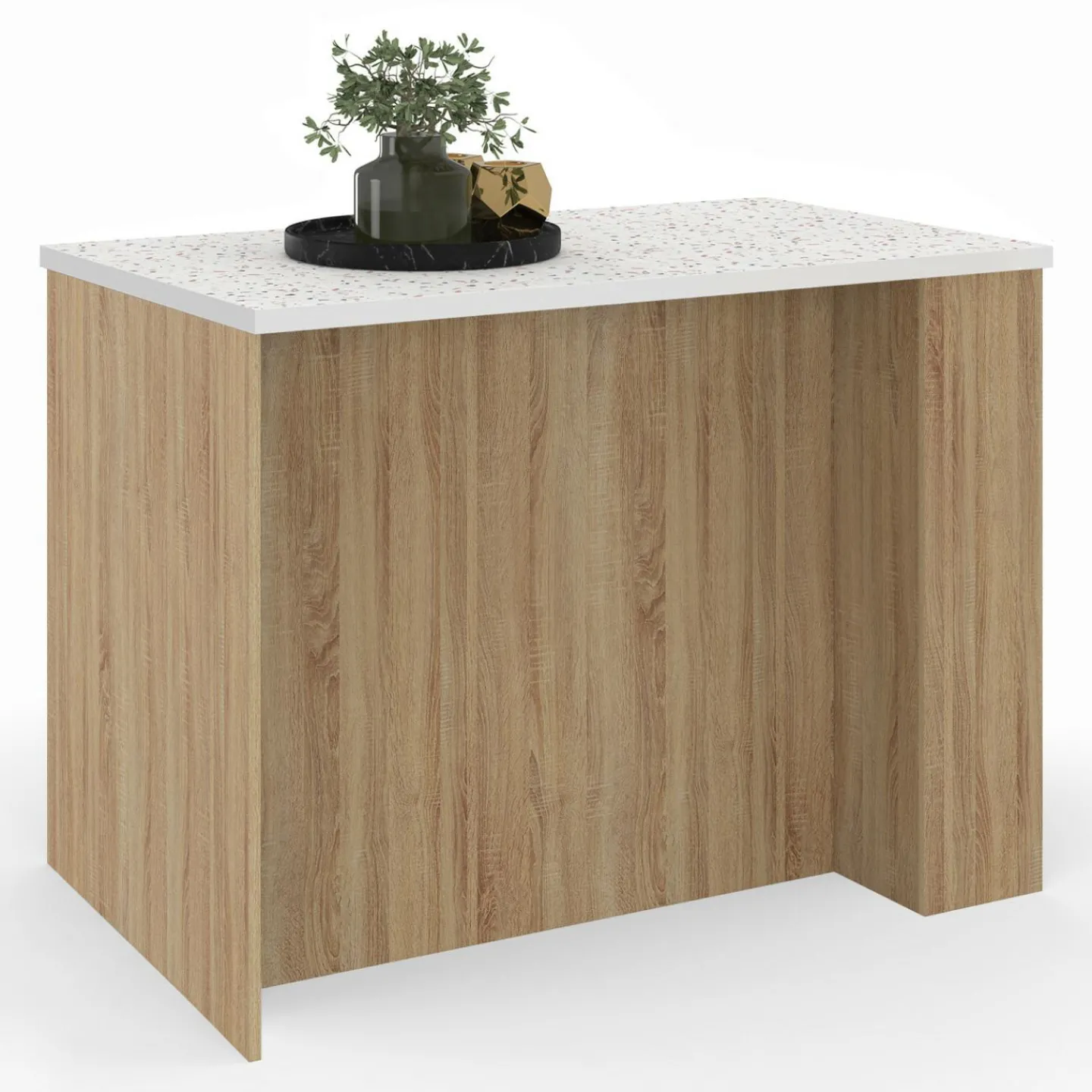 Ilot central TIBO 120 cm bois façon hêtre avec plan de travail effet terrazzo SIMONE