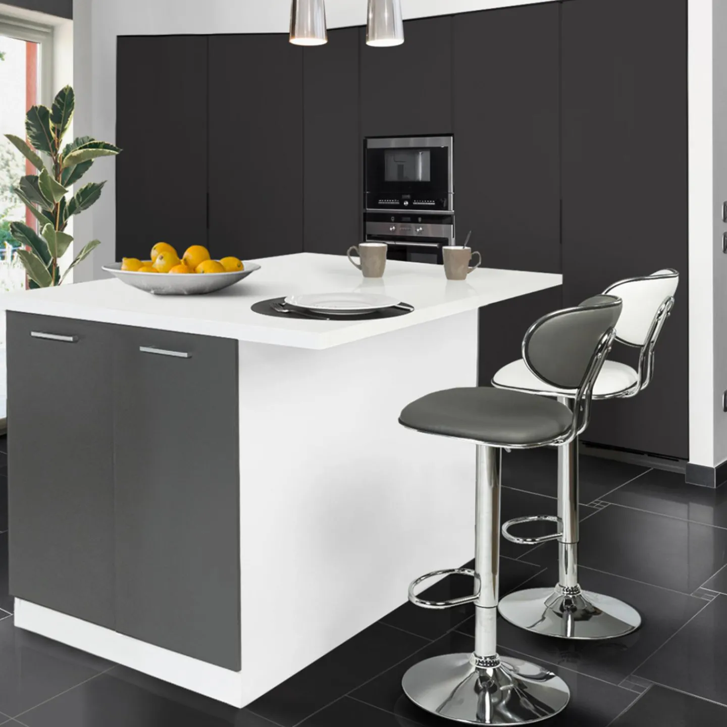 Ses panneaux de particules de 1,5 cm d’épaisseur font de ce meuble îlot cuisine blanc et gris un élément vraiment stable et robuste. Vous avez renversé votre verre ? Un simple coup de chiffon humide et voilà votre îlot central + table nettoyé !
