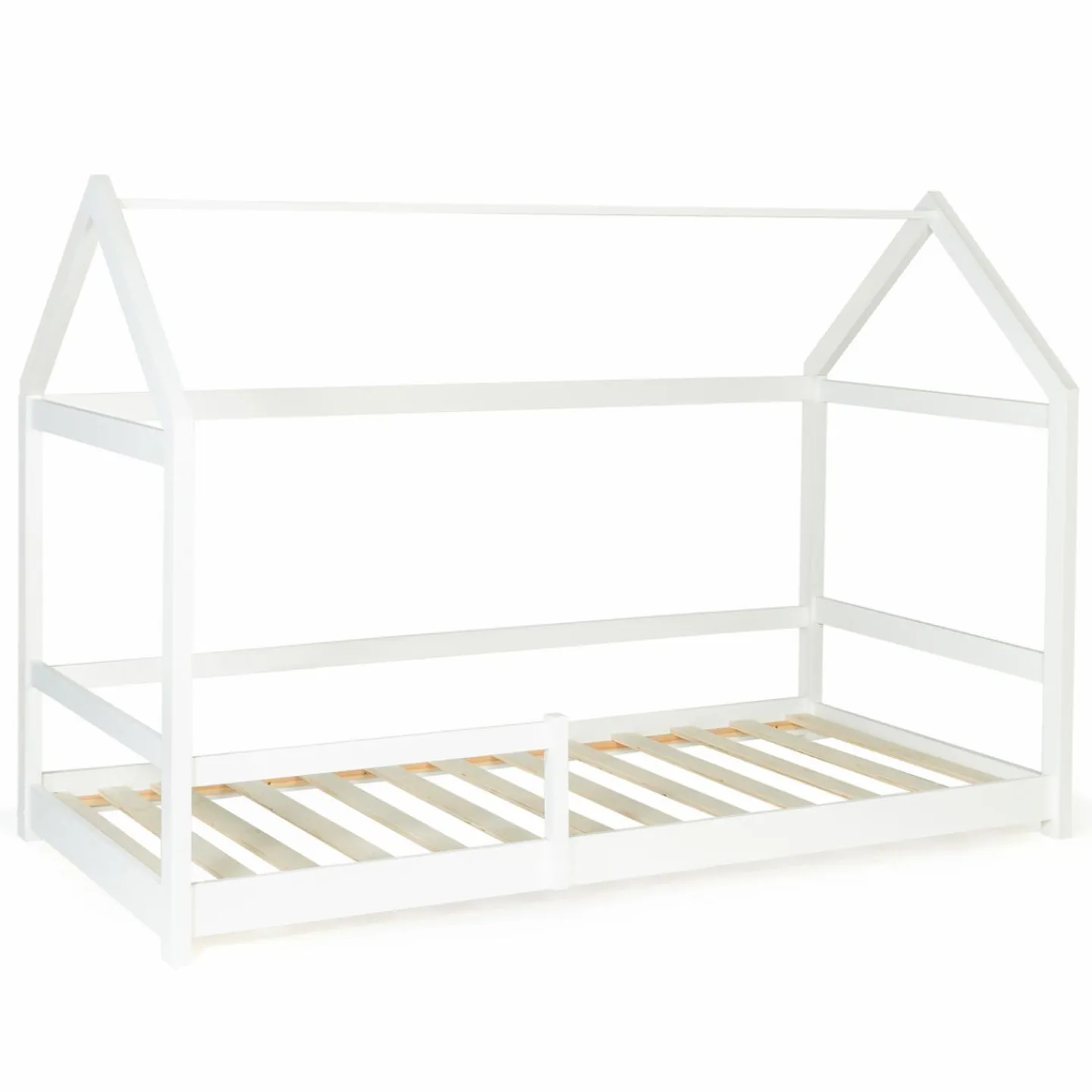 À la recherche d’un lit cabane 90×190 cm avec un couchage au sol pour permettre à votre enfant de laisser libre cours à son imagination et dormir en sécurité ? Découvrez ce lit cabane au sol blanc avec sommier et barrières pas cher doté d’une structure en pin et d’un sommier 13 lattes qui garantit confort et solidité.