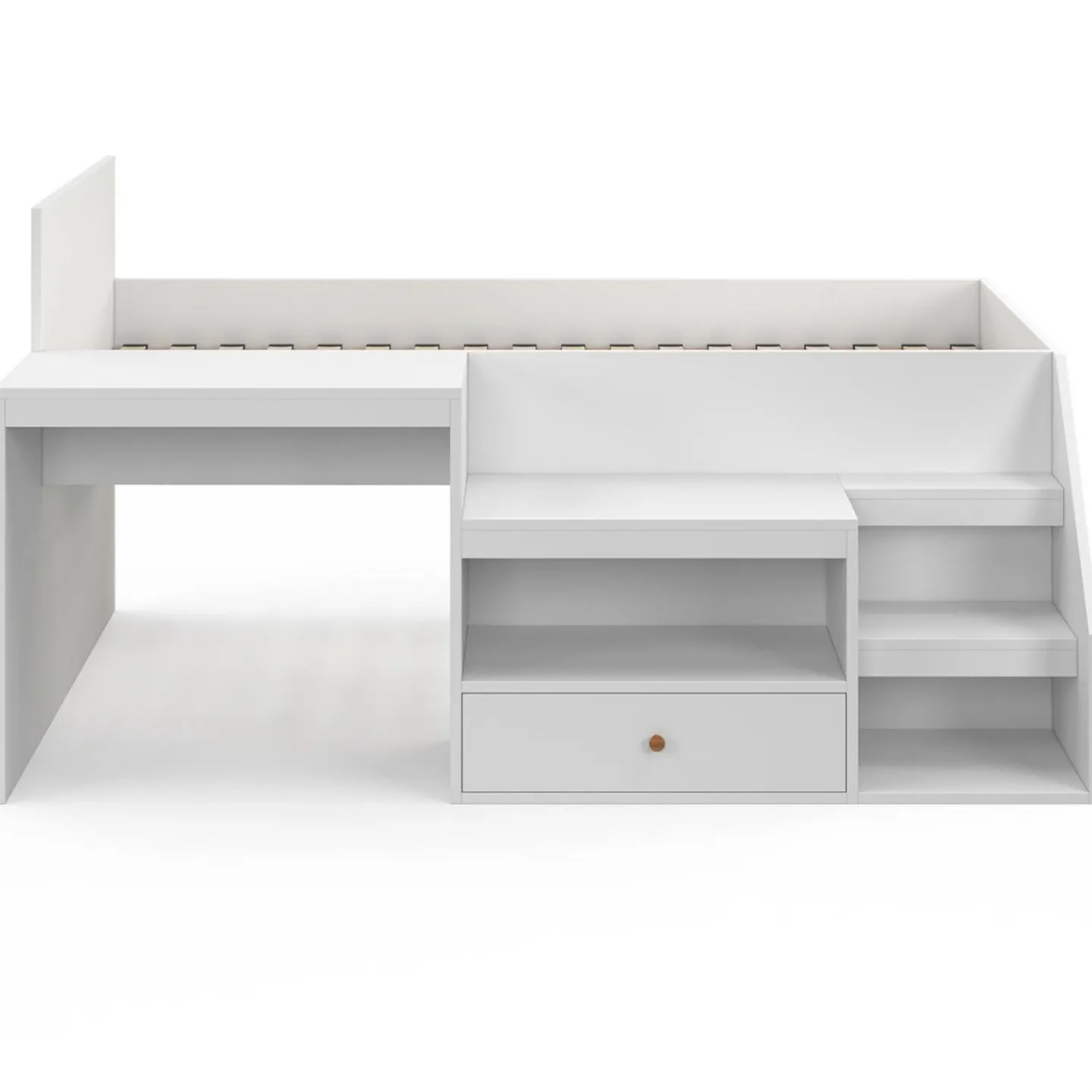 Lit combiné avec sommier, bureau et rangement LEOPOLD 90 x 190 cm blanc