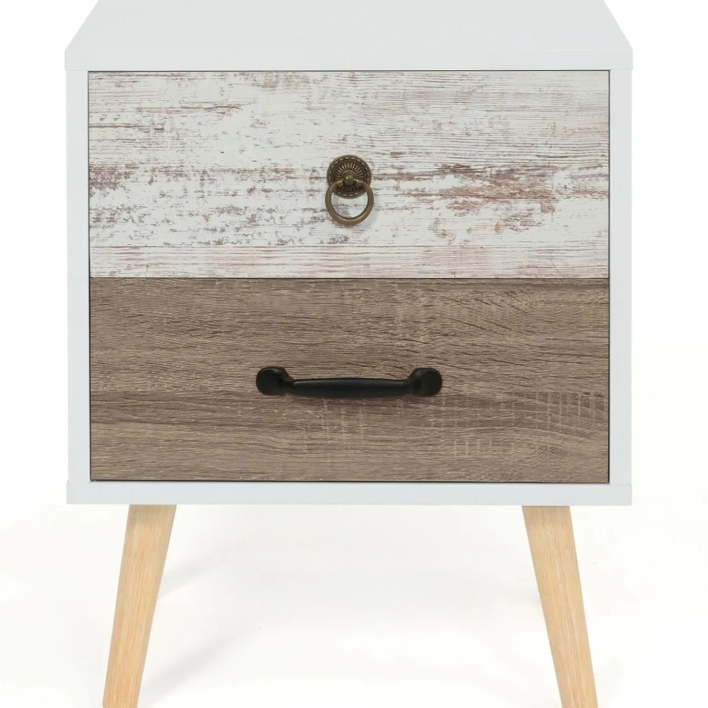 À la fois fonctionnel et design, ce lot de 2 tables de chevet apporte une touche nordique à votre pièce ! Les pieds fuselés en bois de ces tables de chevet scandinaves en blanc et bois dépareillé donnent en effet un look scandinave très tendance.
