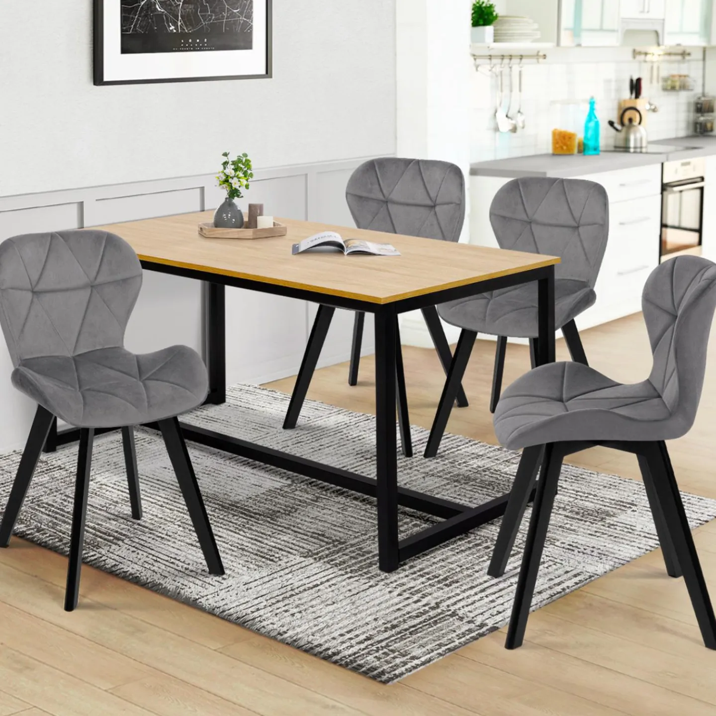 Be the first to review “Lot de 4 chaises en velours gris clair avec pieds noirs assise matelassée*IDMarket Clearance”