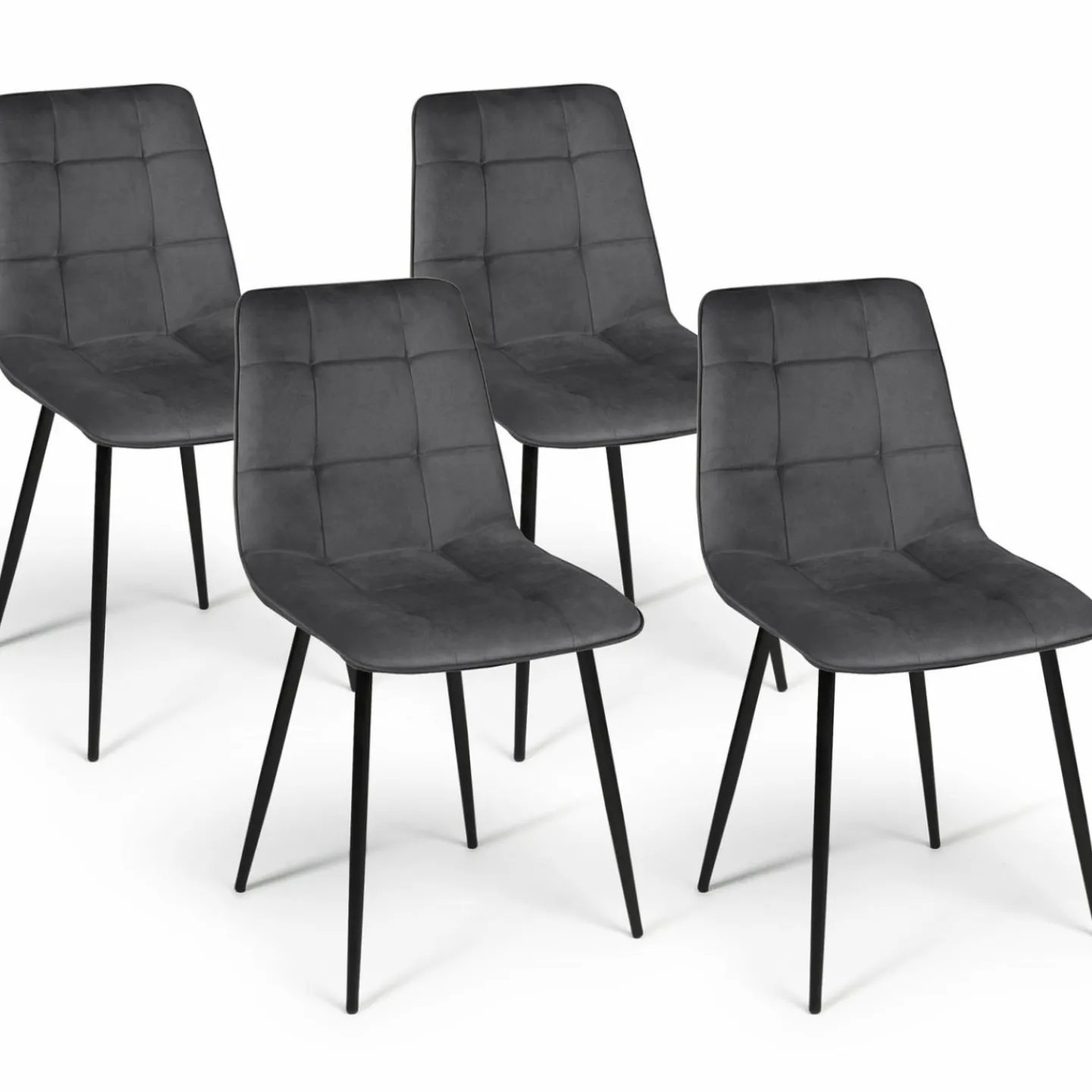 Lot de 4 chaises MILA en velours gris foncé pour salle à manger