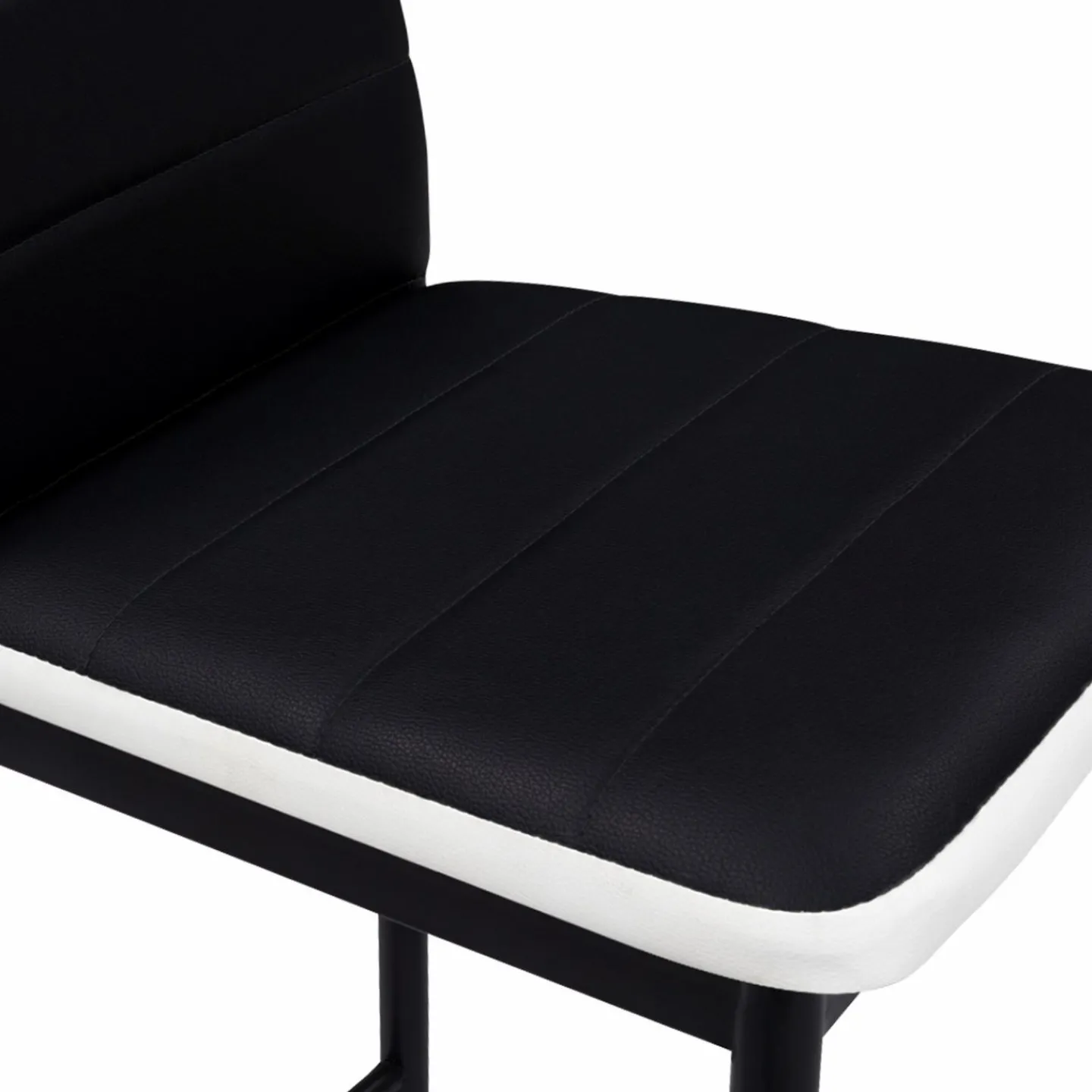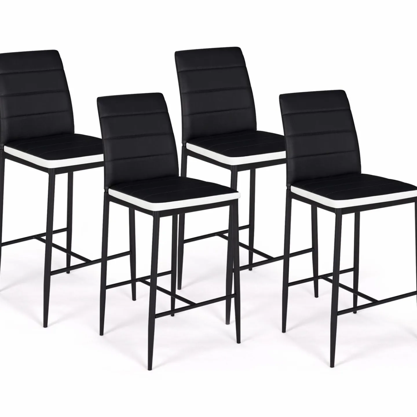Le design contemporain de ce lot de 4 tabourets de bar en PVC noir avec bande blanche aux couleurs sobres vous offre tous les bénéfices d’une chaise à hauteur de vos îlots et tables hautes.