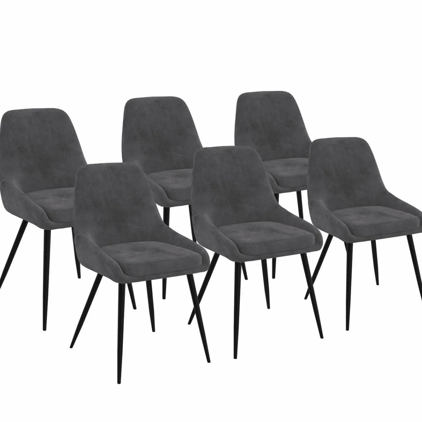 Installez-vous confortablement sur vos chaises en velours pour partager de bons repas avec vos proches. Les coussins en velours, les demi-accoudoirs et les dossiers moelleux de ce lot de 6 chaises en velours gris foncé vous donnent envie de rester des heures à table.