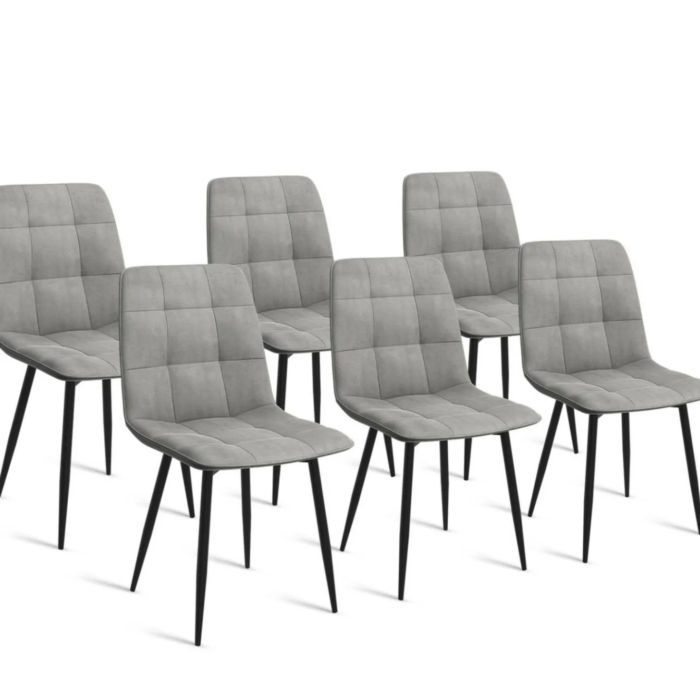 Lot de 6 chaises MILA en velours gris clair pour salle à manger