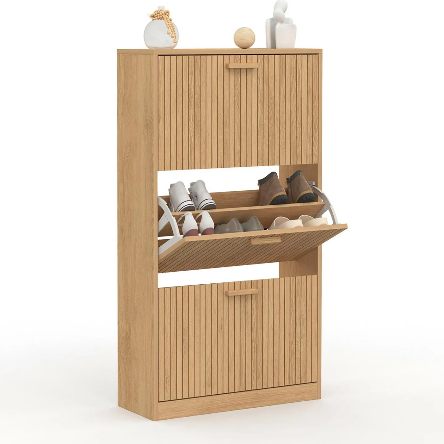 Meuble à chaussures 18 paires 3 portes tasseau bois coloris chêne*IDMarket New
