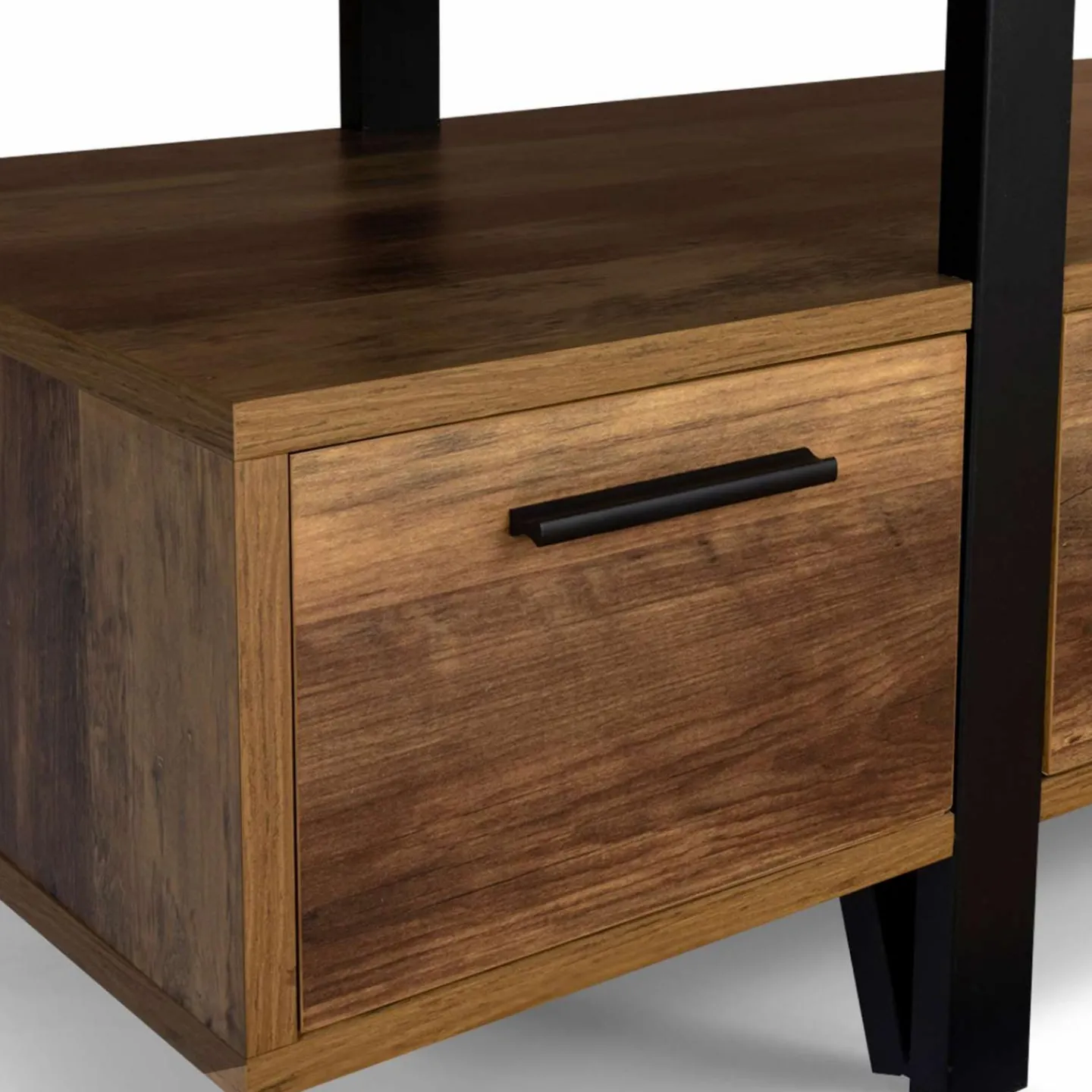 Profitez aussi de 3 grands tiroirs coulissants avec poignée pour ranger vos affaires à l’abri des regards et garder votre espace de vie toujours bien rangé. Pas besoin de perceuse : chaque tiroir est déjà équipé de trous passe-câbles pour faire vos branchements sans tracas.