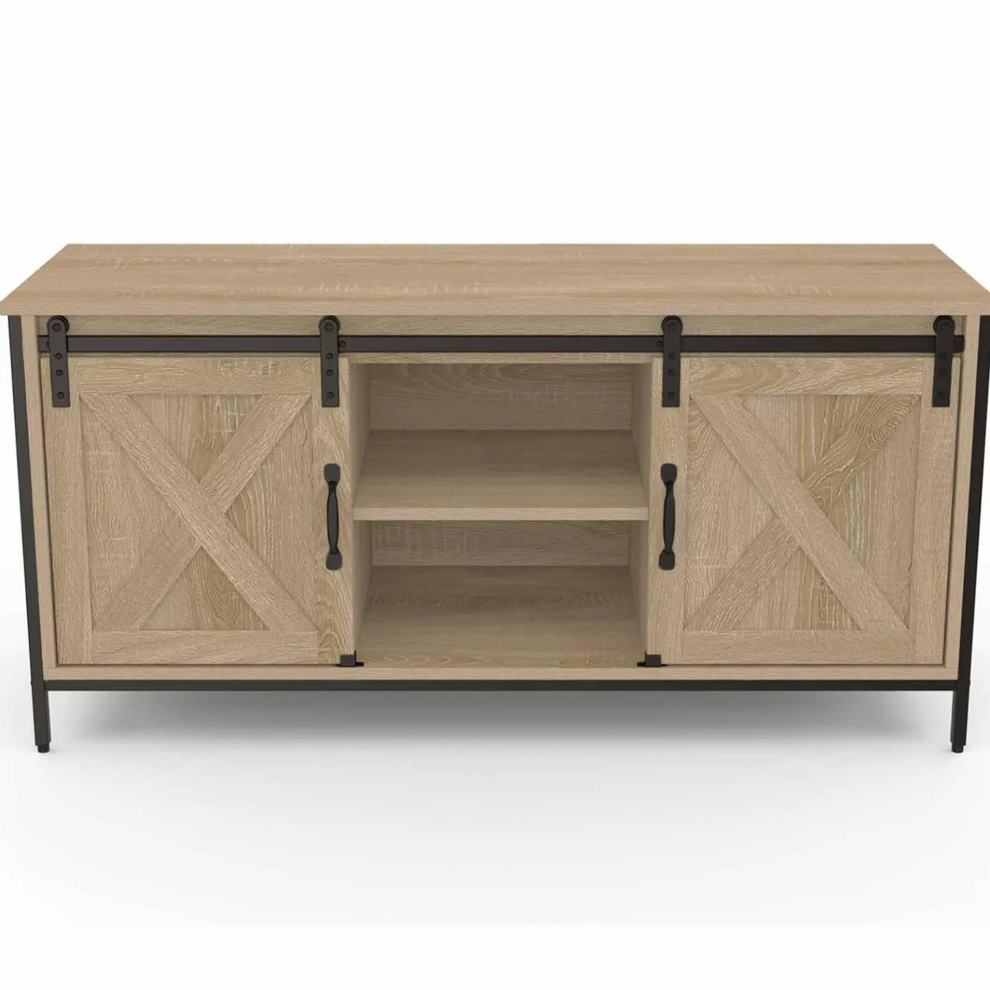 N’hésitez plus et offrez-vous ce meuble TV aux portes coulissantes type grange pour mixer le style traditionnel et industriel dans votre intérieur en un tour de main !