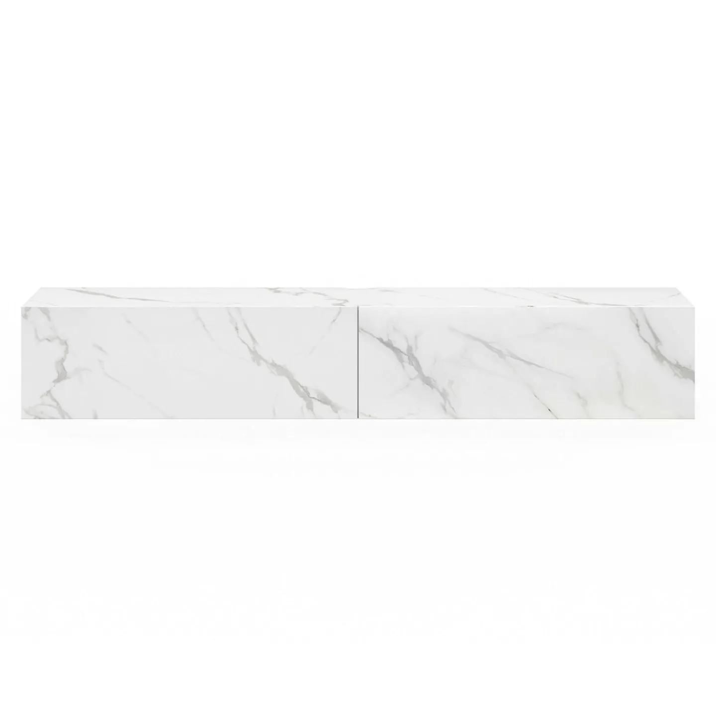 Meuble TV 180 cm suspendu ELIO 2 portes bois effet marbre