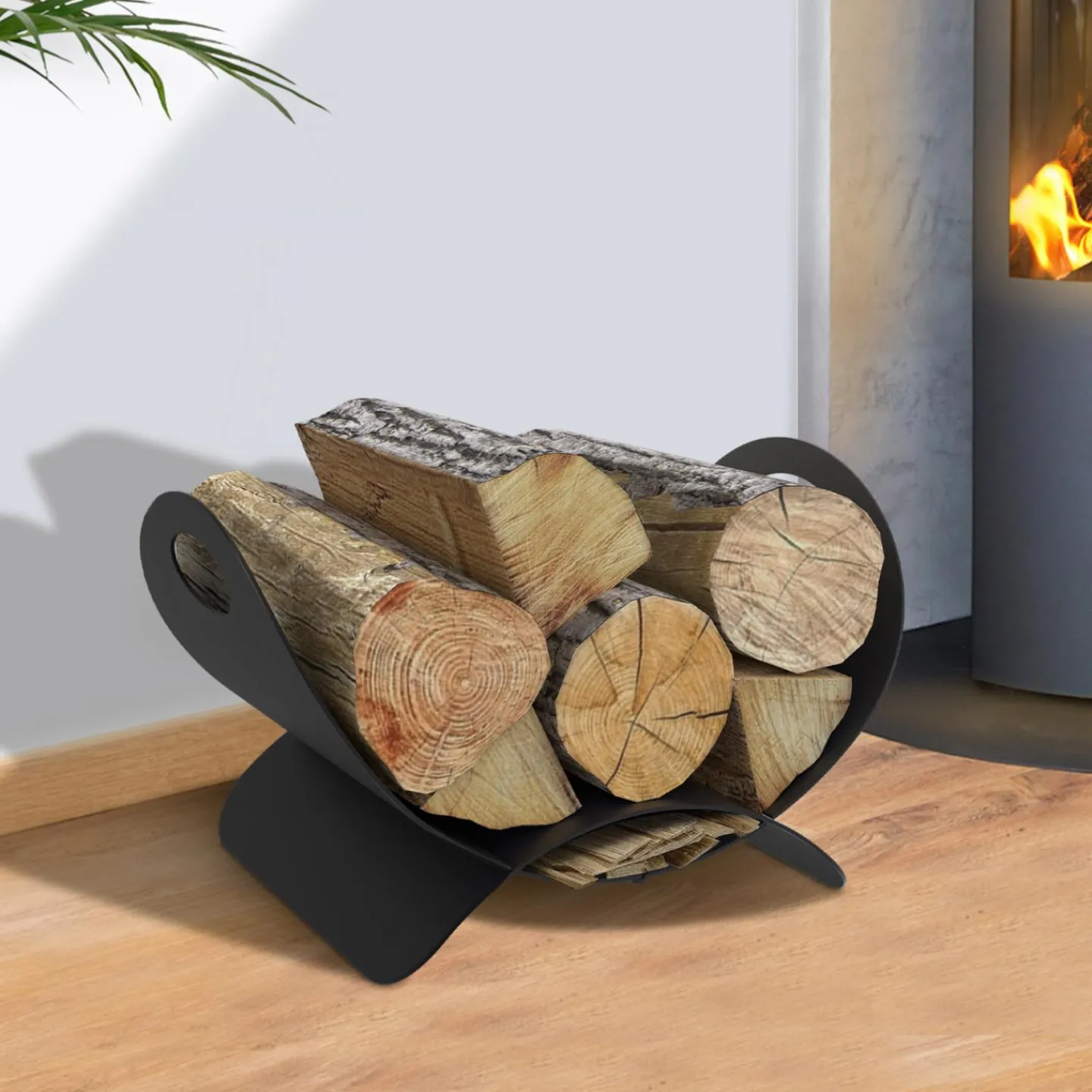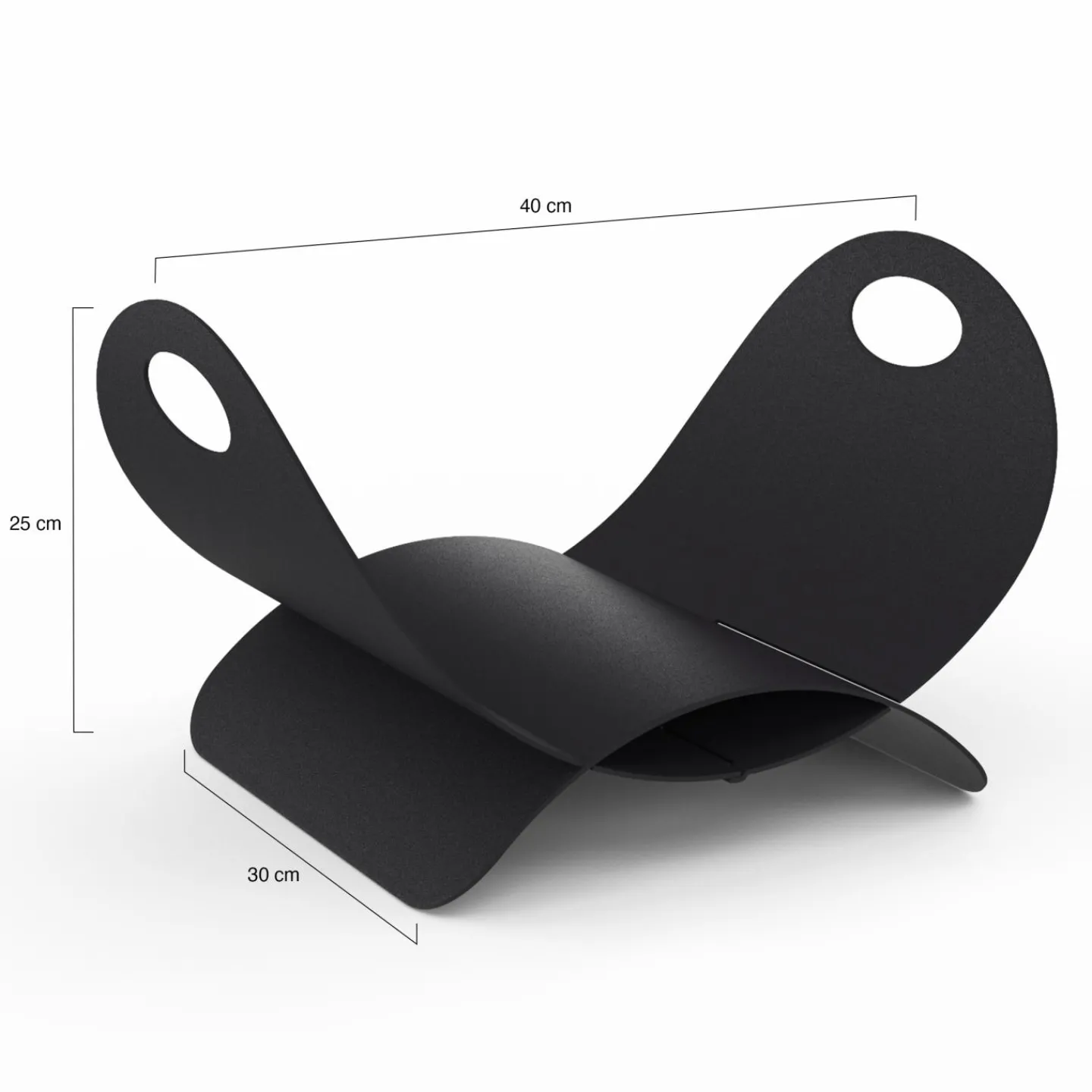 Panier range bûches demi lune 40 x 30 x 25 cm en acier noir