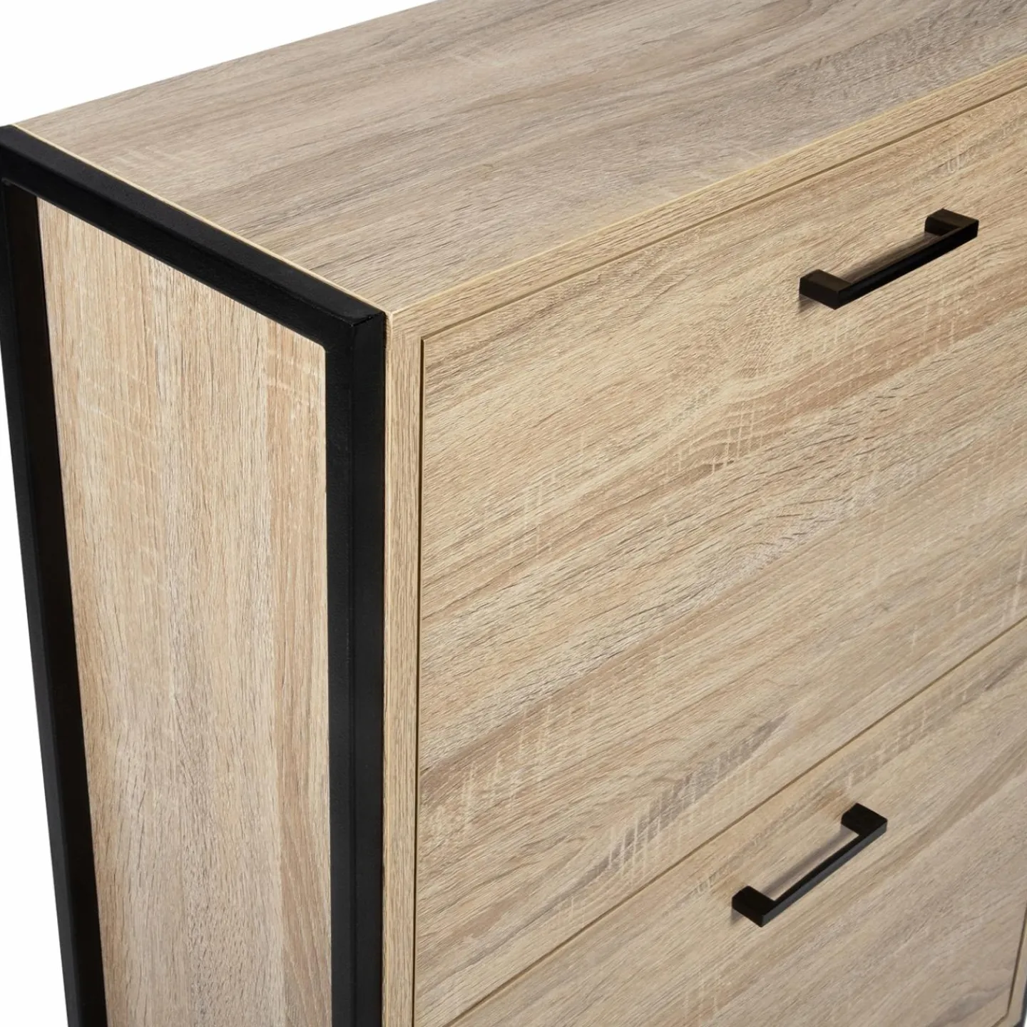 Son vrai avantage, c’est bien sûr sa capacité : dans chacun des 2 espaces de rangement, vous pouvez stocker 6 paires de chaussures à l’abri de la poussière de manière discrète, soit 12 au total. Stable et fonctionnelle, cette armoire à chaussures au look industriel arbore de jolies poignées intégrées et des finitions soignées.