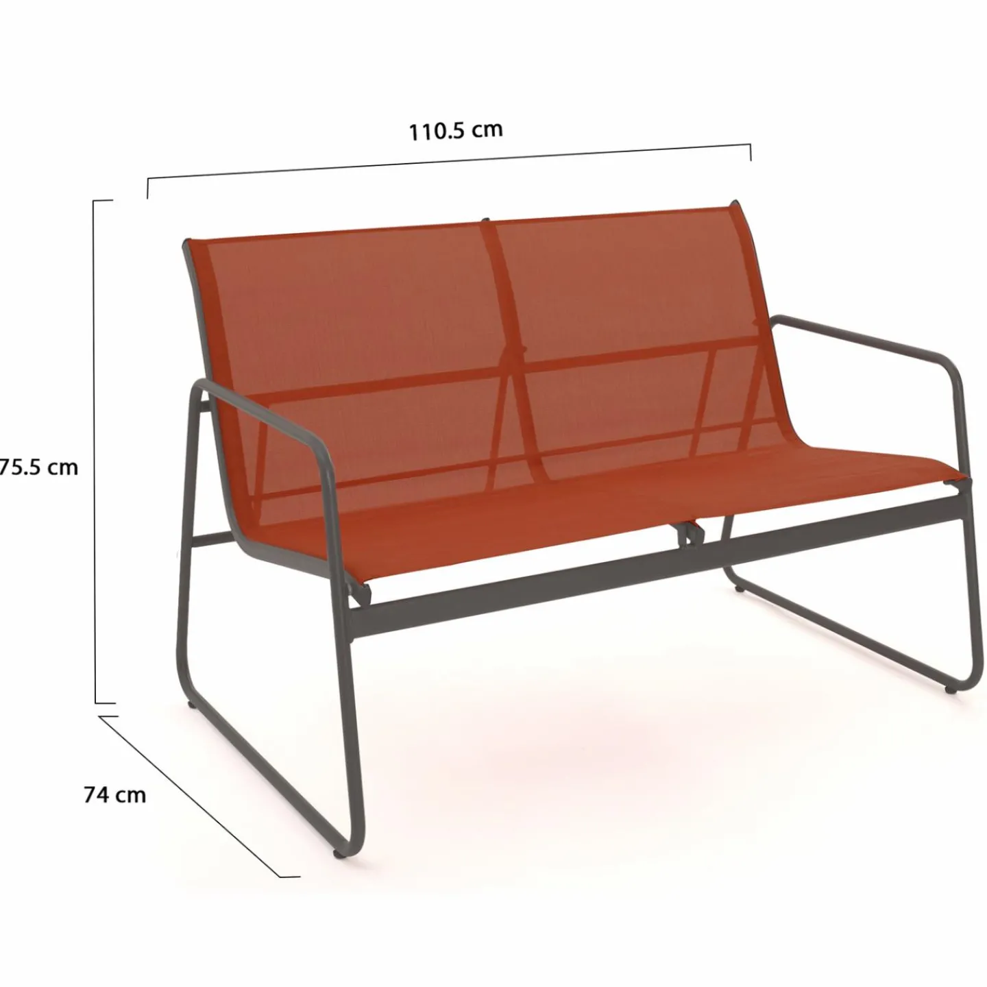 Descriptif du salon de jardin bas en acier et textilène terracotta