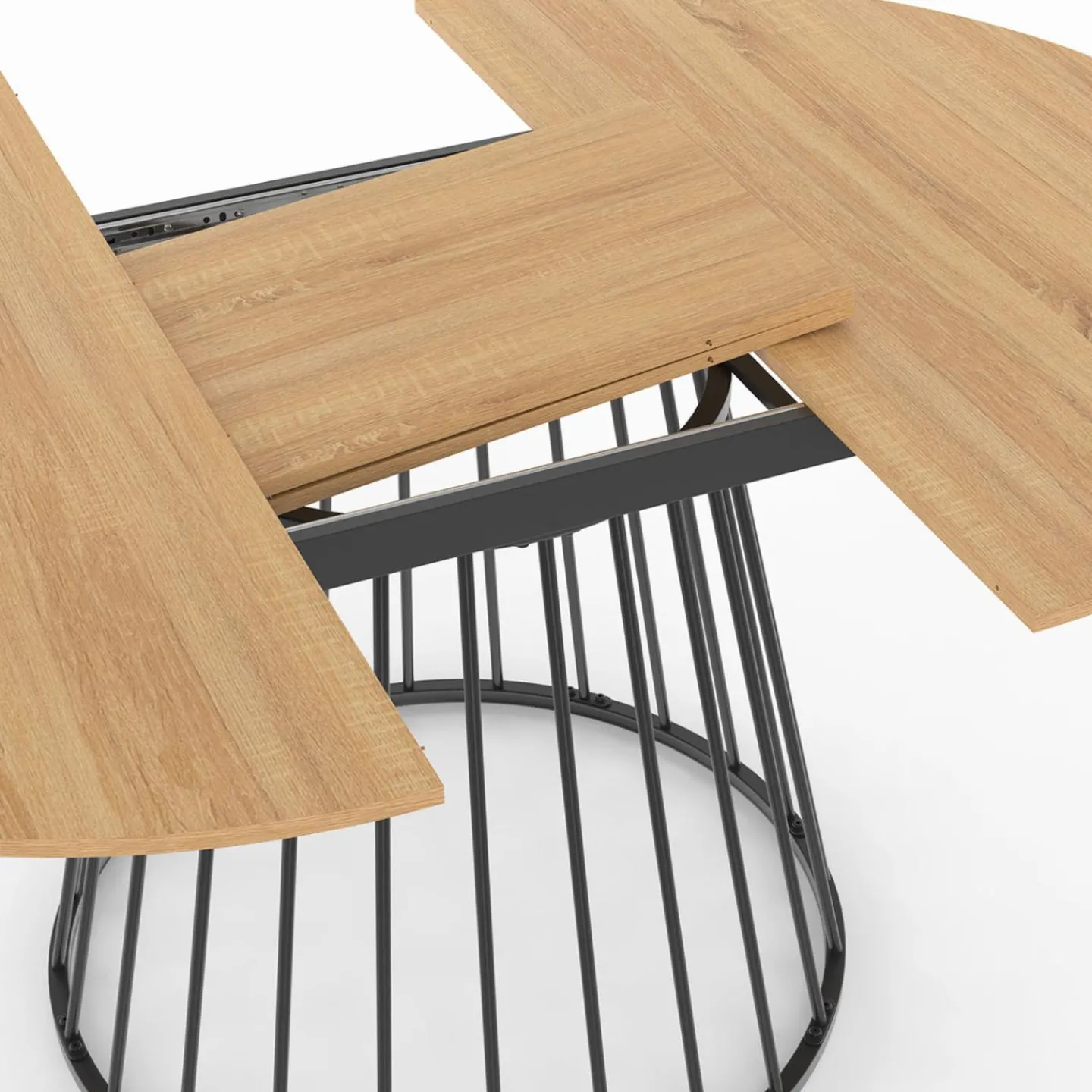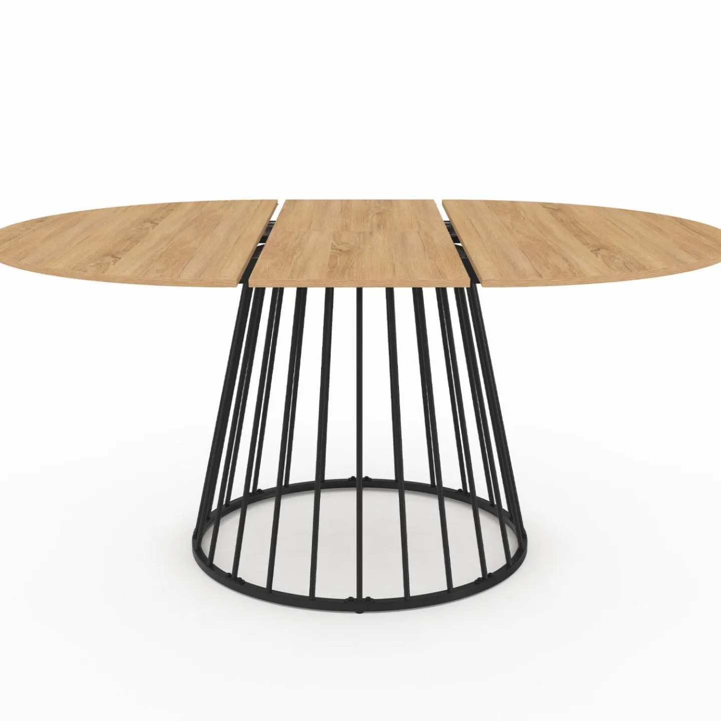 Table à manger extensible ronde YUNA 4-8 pers plateau bois et pied filaire en métal 110 – 150 cm