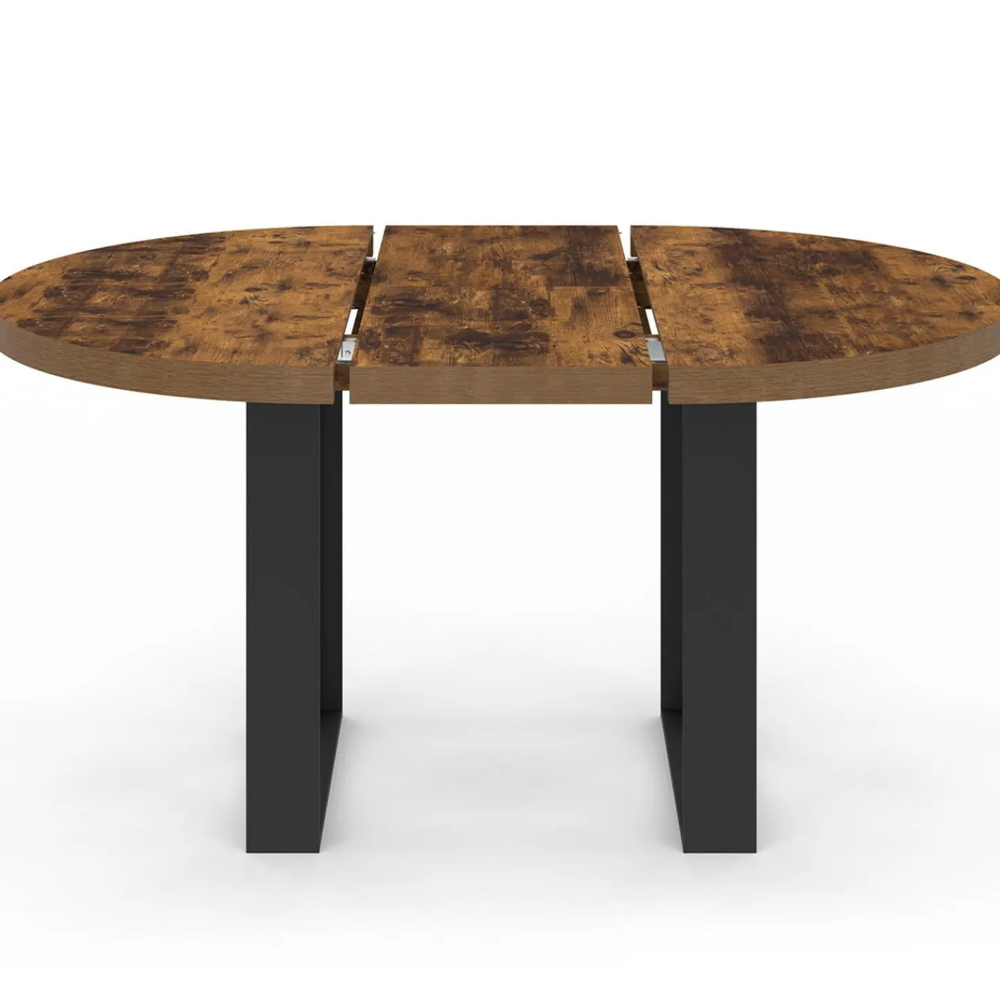 Cette table à l’aspect massif aux lignes épurées sera la pièce maîtresse de votre salle à manger. Sa forme arrondie lui apporte finesse et élégance. Son style lui donne un aspect industriel qui s’adapte parfaitement aux univers classiques et contemporains. La combinaison des coloris bois vieilli et noir apportera une touche sophistiquée à votre intérieur !