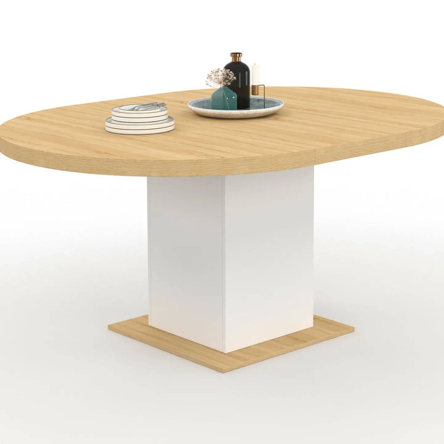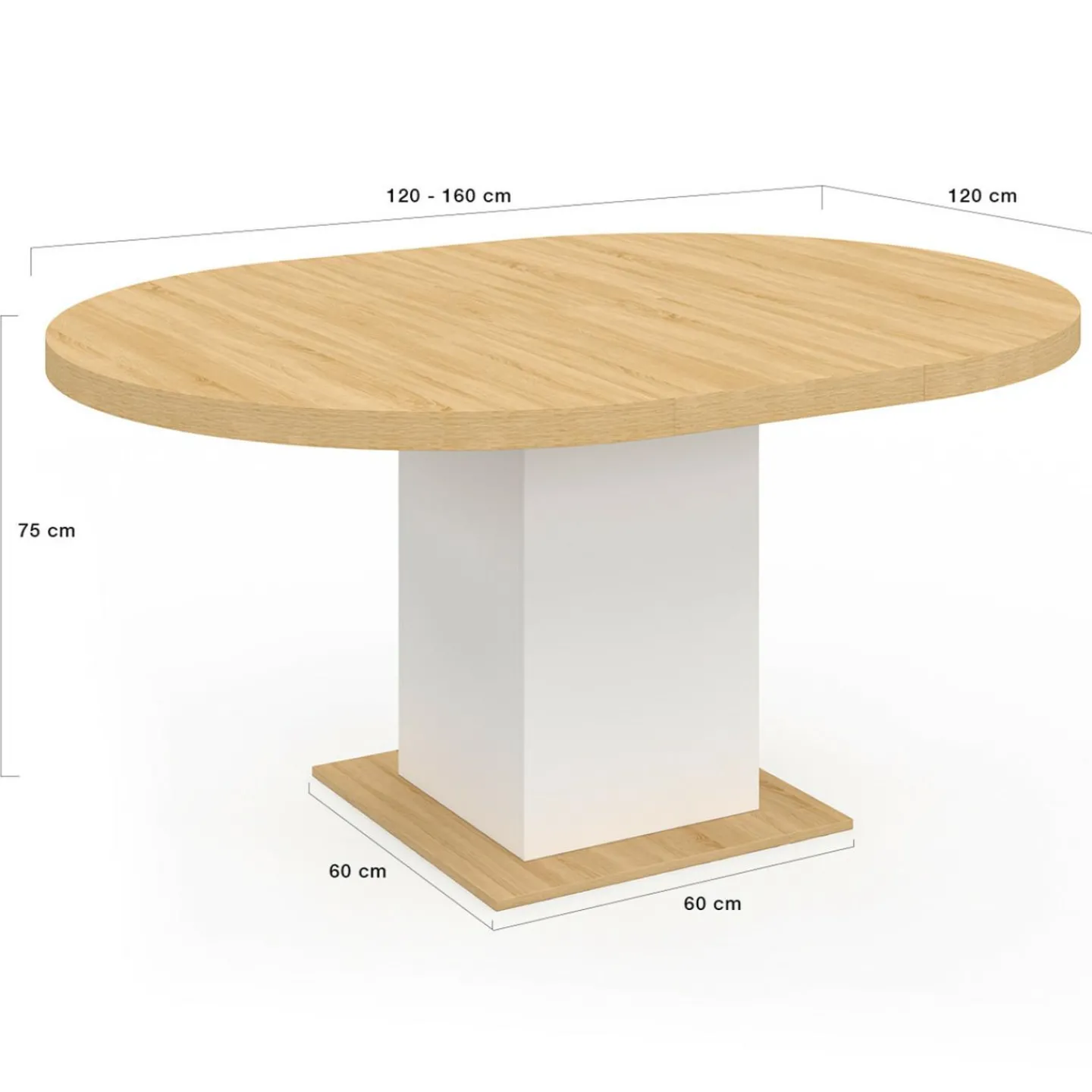 Table à manger extensible ronde 4-8 personnes bois et blanc 120-160 cm*IDMarket