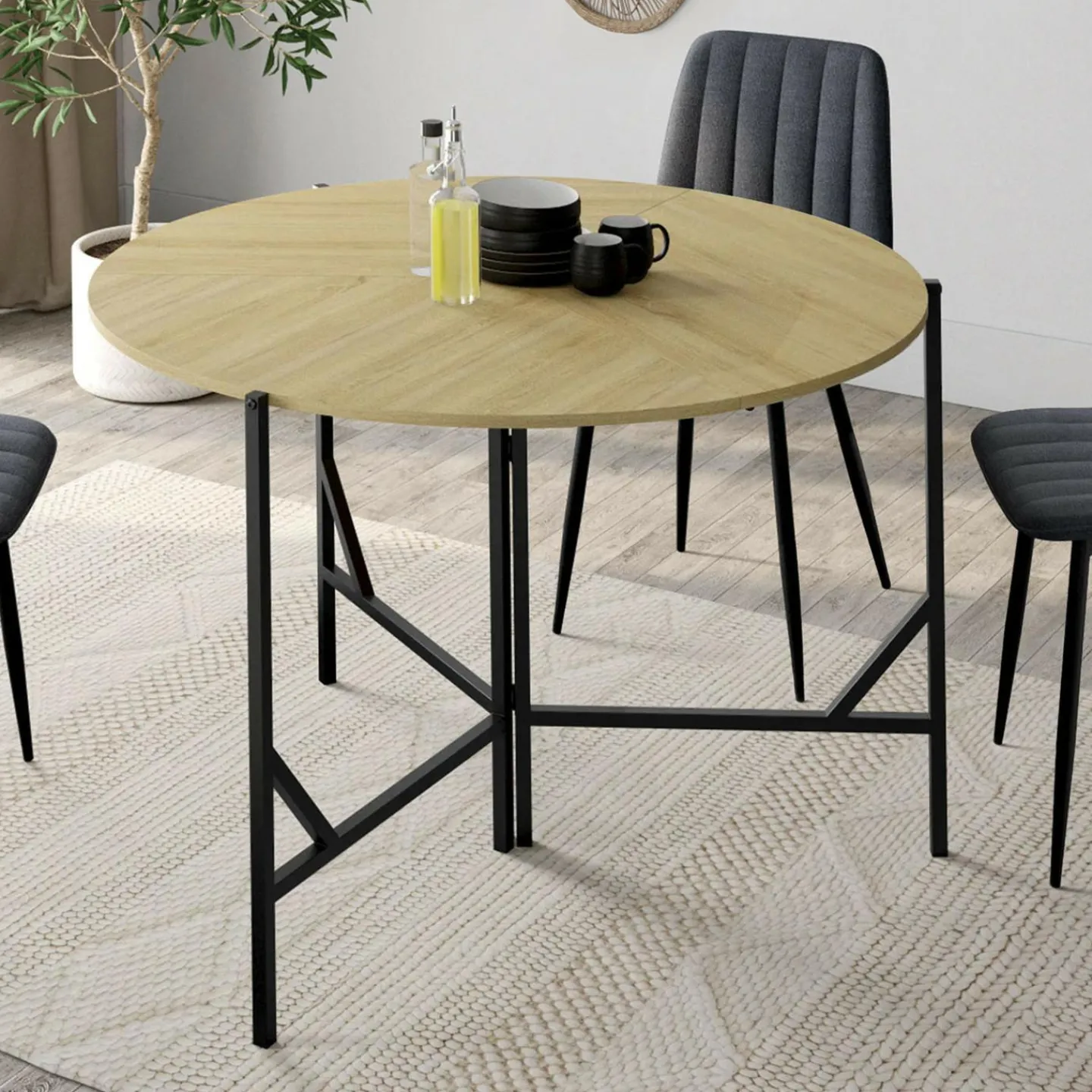 Table à manger pliante ronde YAEL 4 personnes bois et noir design industriel 110 cm