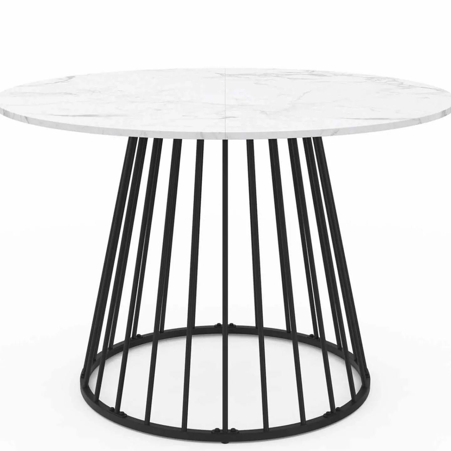 Table à manger ronde YUNA 6 personnes pied filaire en métal noir et plateau effet marbre blanc ALASKA 110 cm