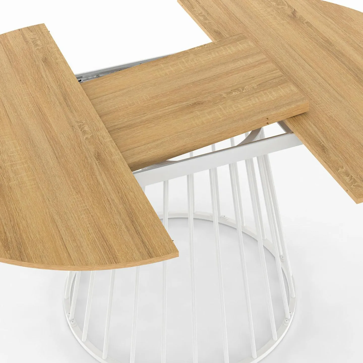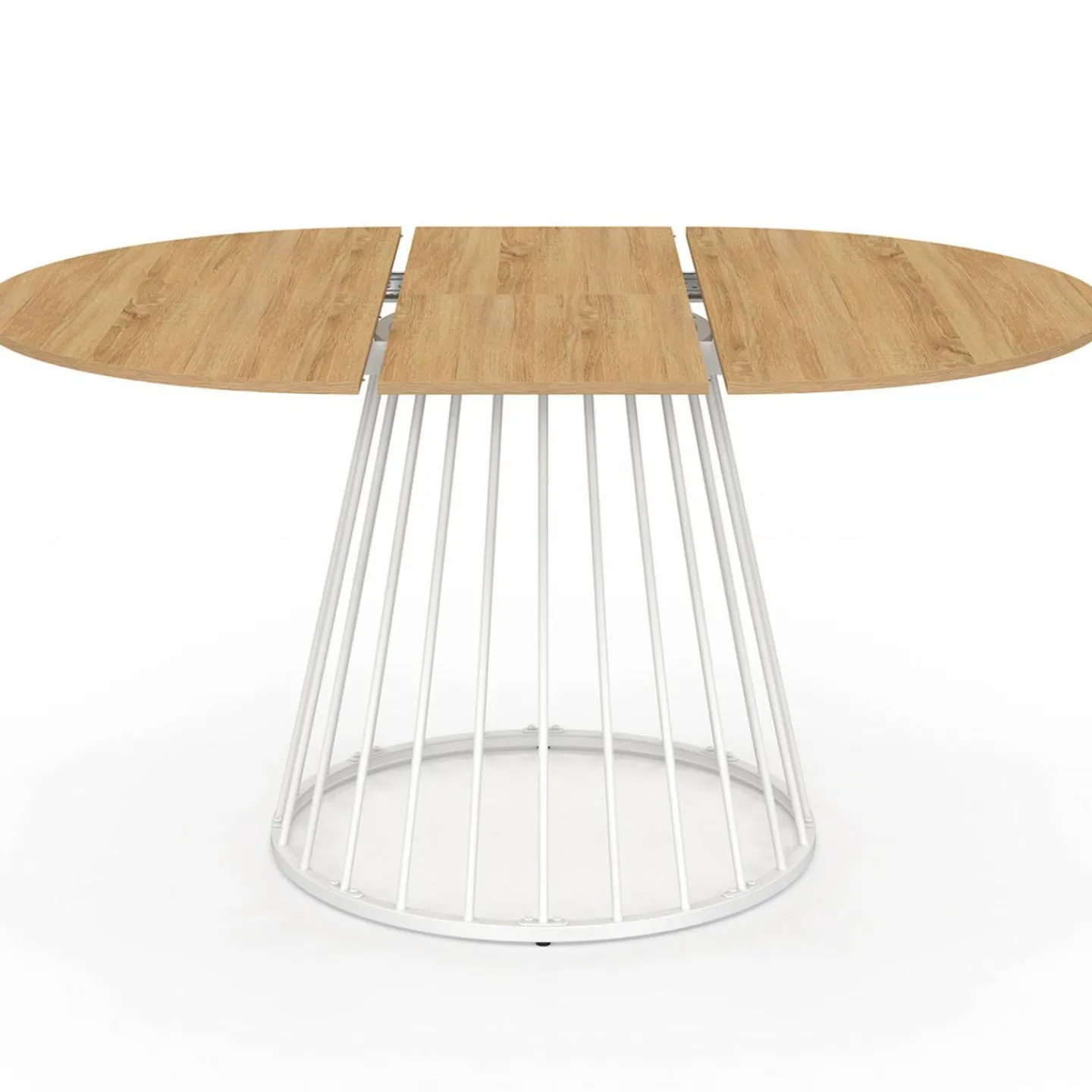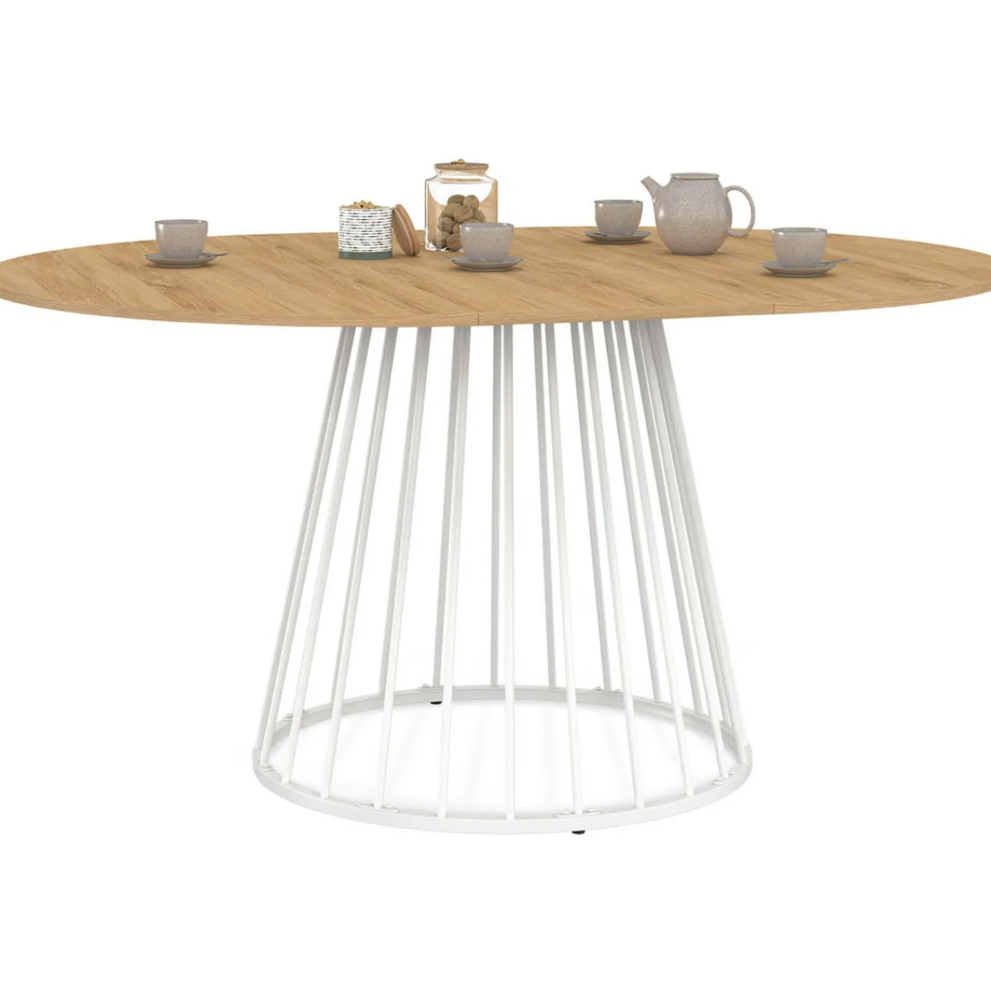 Table à manger ronde extensible 110-150 cm 4-8 personnes plateau bois et pied filaire métal blanc*IDMarket