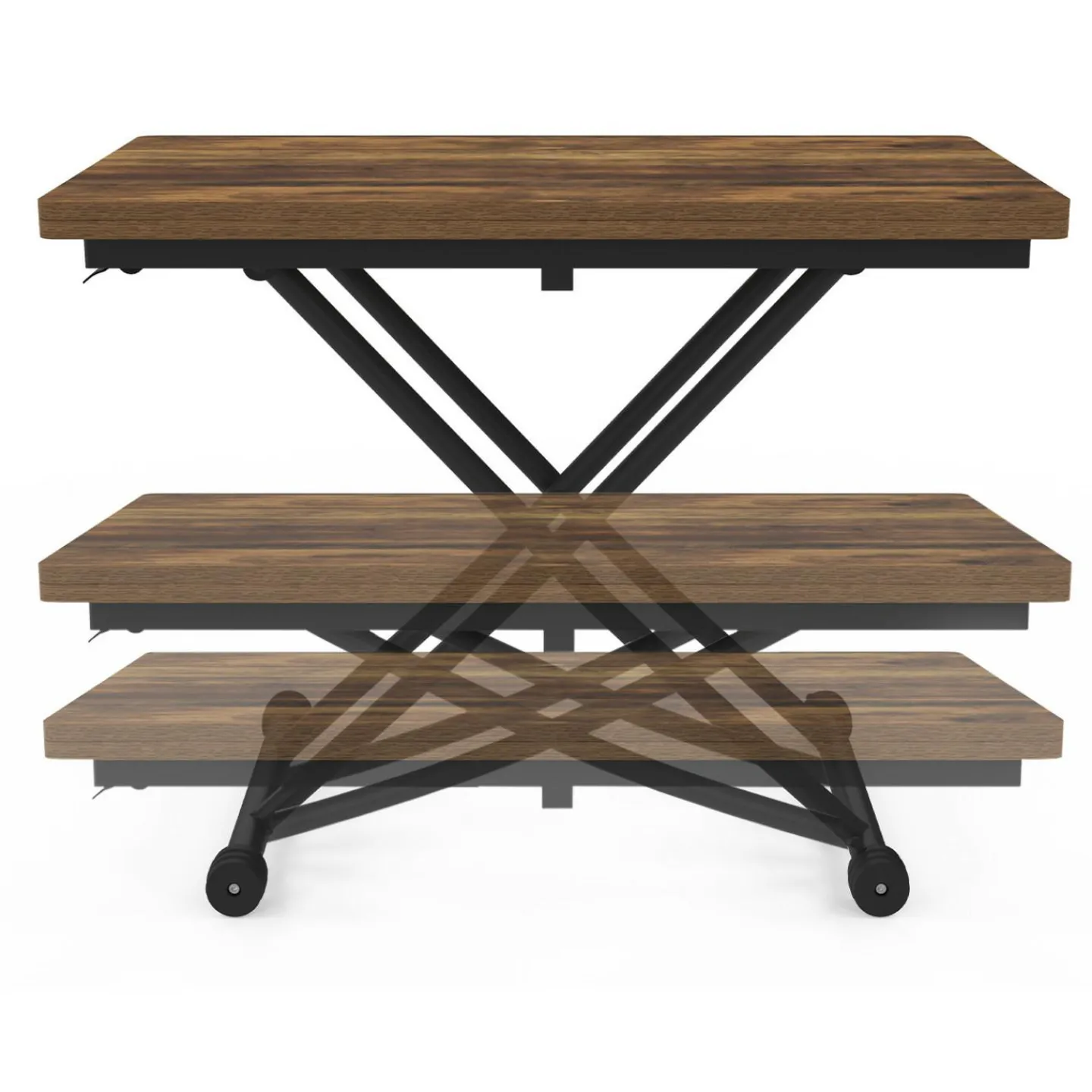 Craquez pour la table basse relevable plateau portefeuille bois foncé pieds noir URBANA à petit prix !