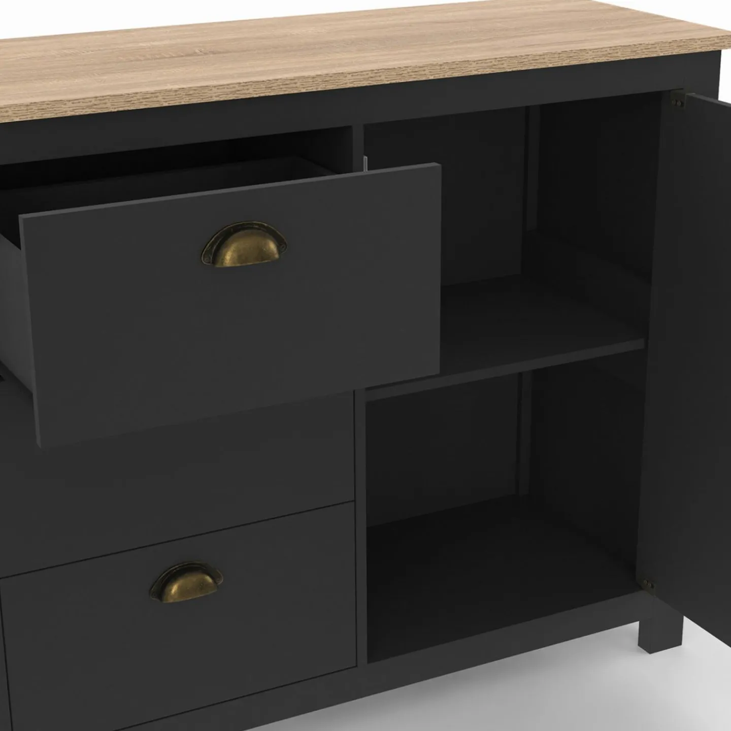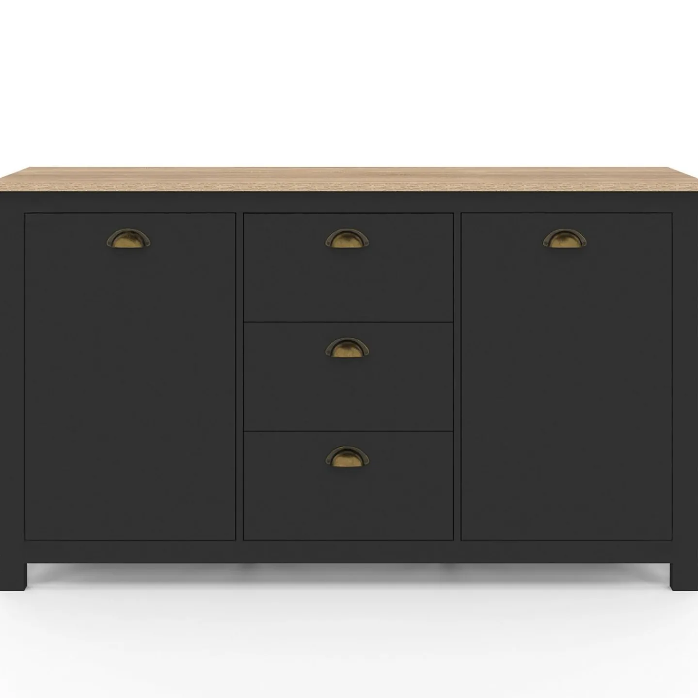 Buffet 130 cm ISIS campagne 2 portes et 3 tiroirs bois et noir