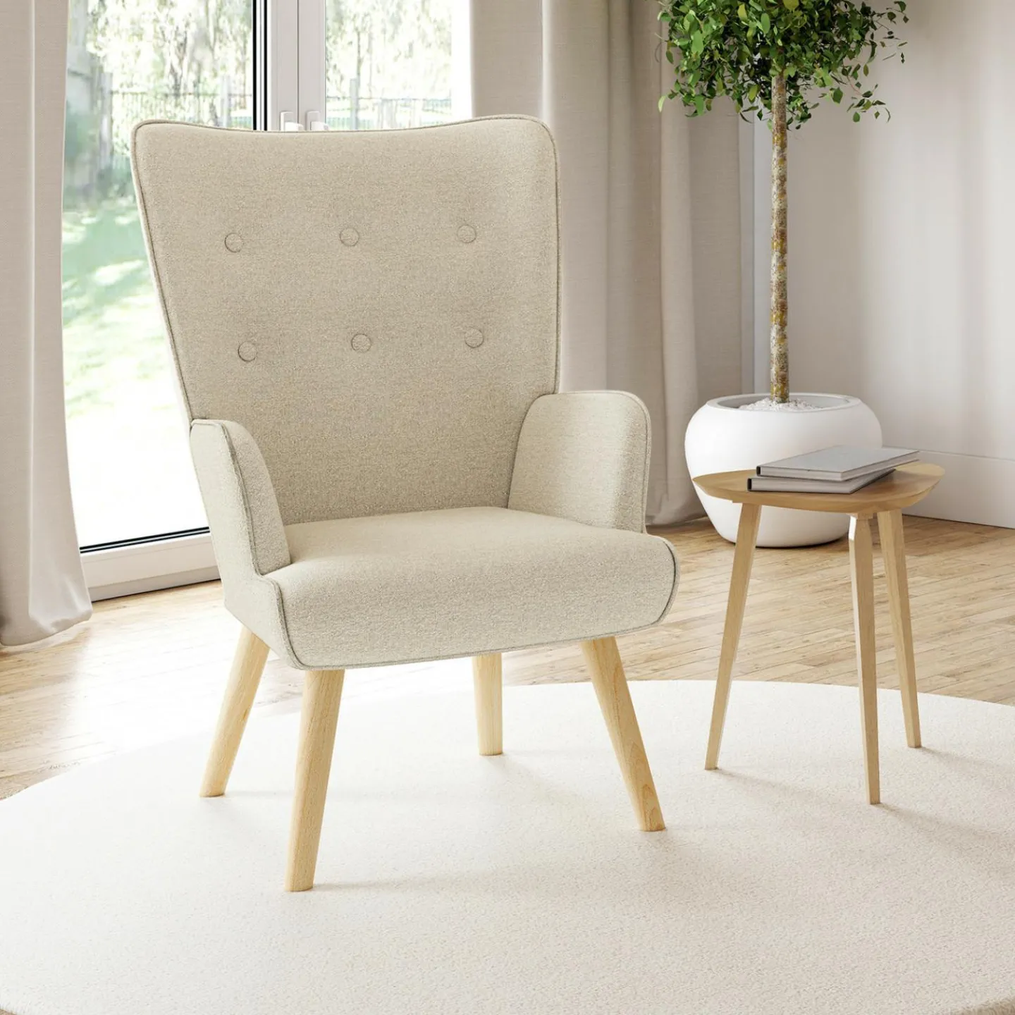 Avec son haut dossier capitonné et son assise moelleuse, vous pourrez profiter d’un fauteuil scandinave pas cher et confortable. Grâce à son design simple mais élégant, il s’intègre parfaitement à toutes les pièces, du salon à la chambre. Découvrez le charme des pieds en bois blond associés au tissu beige ultra tendance.