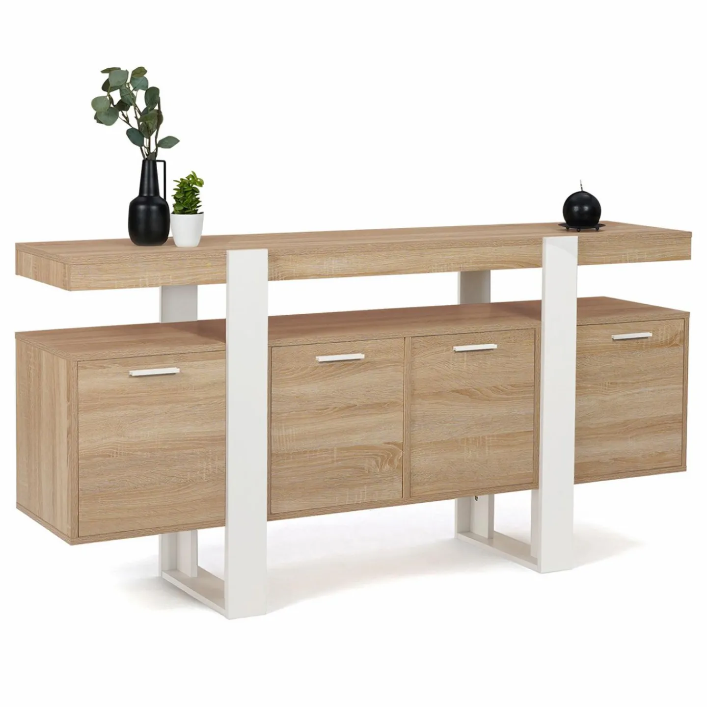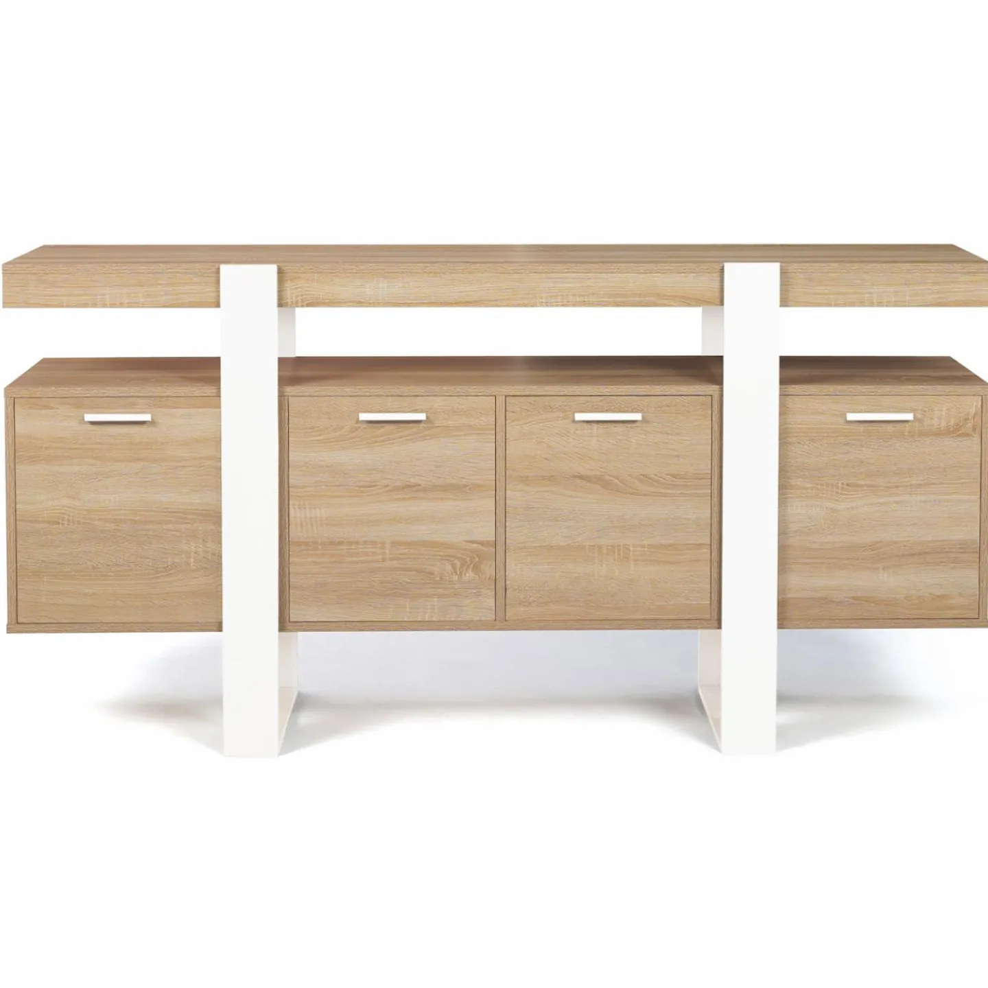 Buffet 160 cm PHOENIX XXL 4 portes bois et blanc