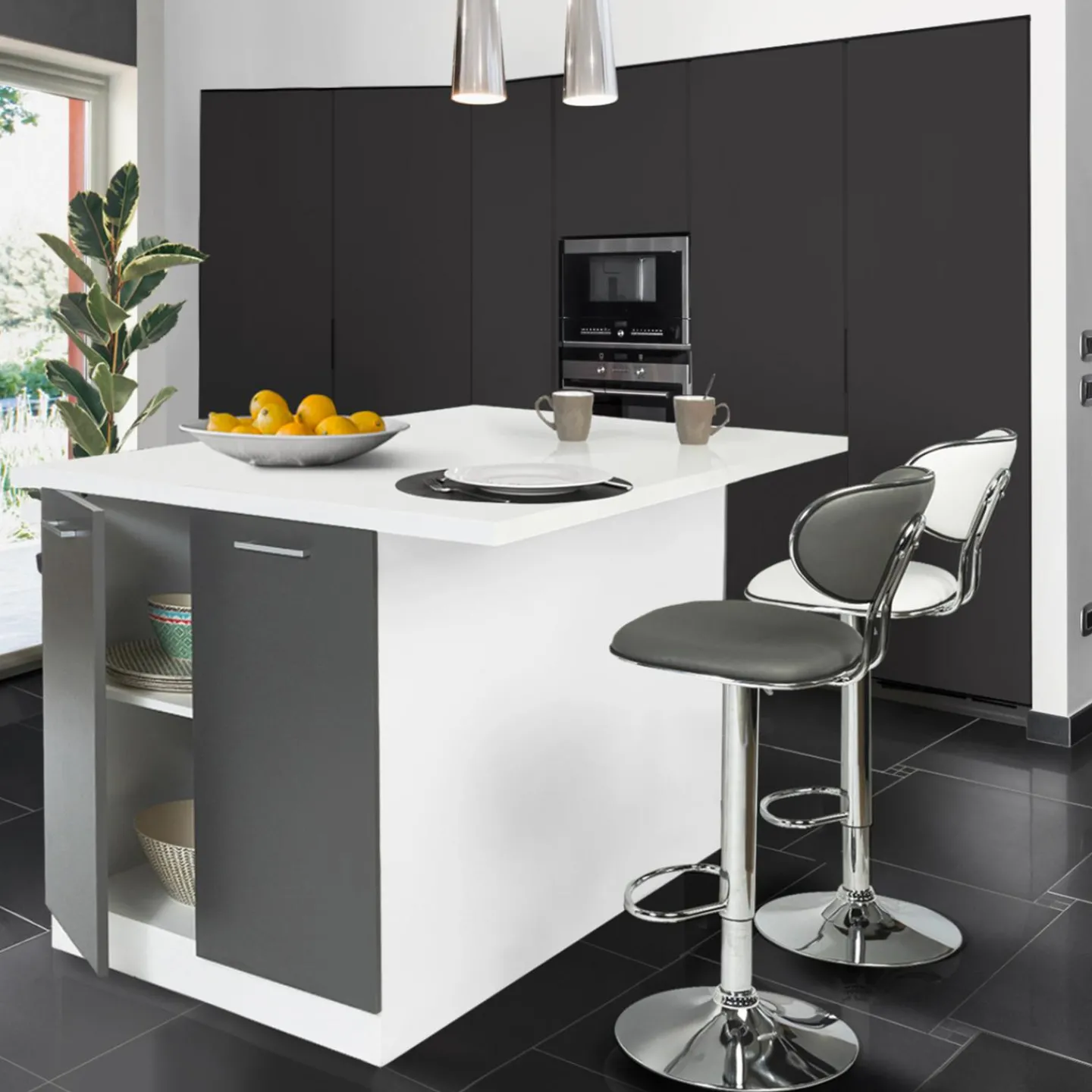 Ses panneaux de particules de 1,5 cm d’épaisseur font de ce meuble îlot cuisine blanc et gris un élément vraiment stable et robuste. Vous avez renversé votre verre ? Un simple coup de chiffon humide et voilà votre îlot central + table nettoyé !