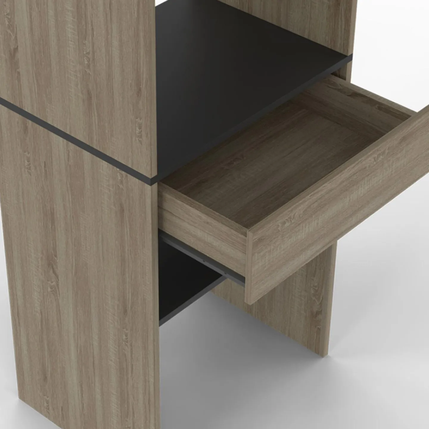 Aménagez le placard de votre chambre, dressing, bureau ou entrée avec le dressing MELINE bois et noir. Ce dressing colonne composé de 2 barres de penderie, 4 étagères et 1 tiroir deviendra votre allié idéal pour un espace ordonné au quotidien.