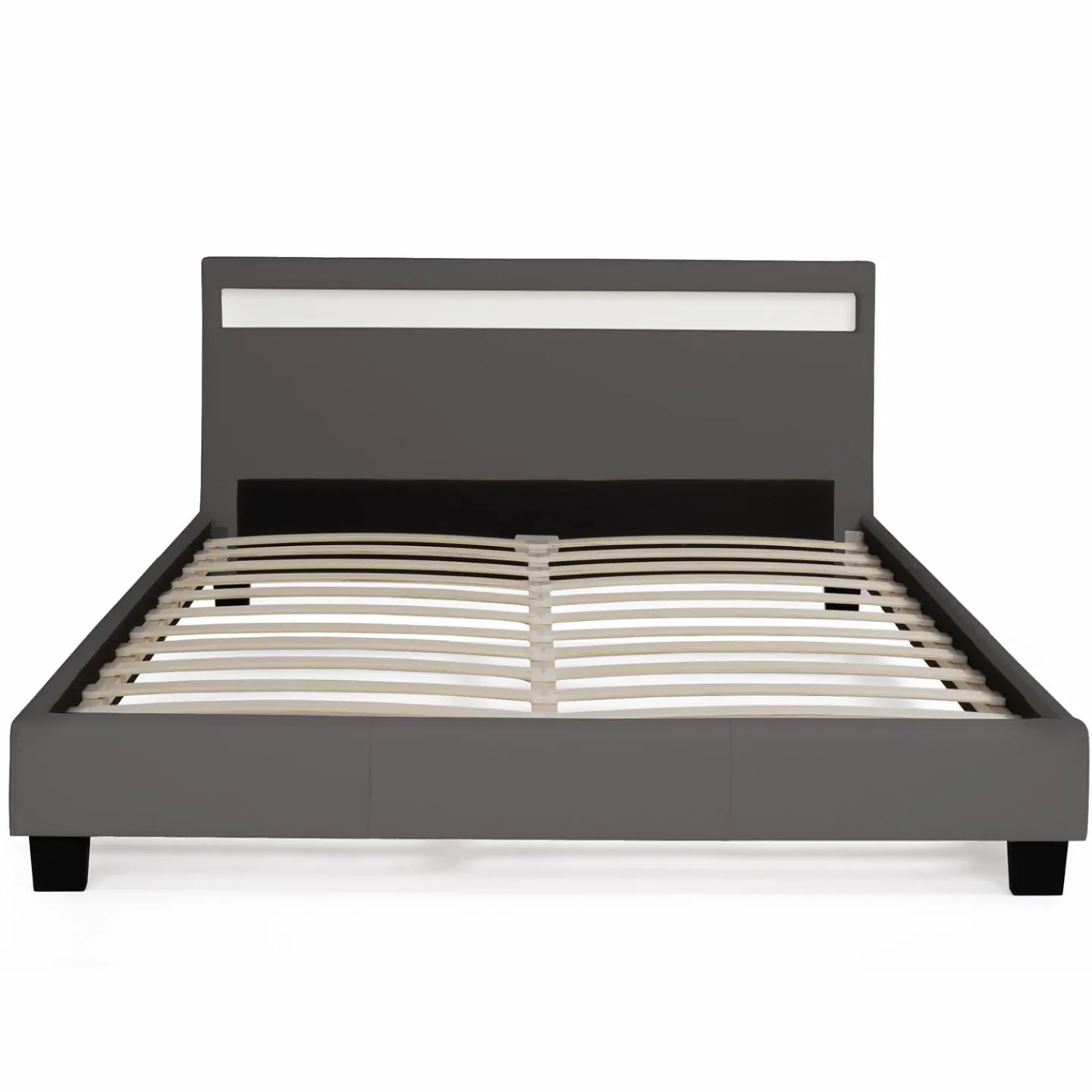 Lit double NEO avec tête de lit LED intégrées et sommier 140 x 190 cm PVC gris