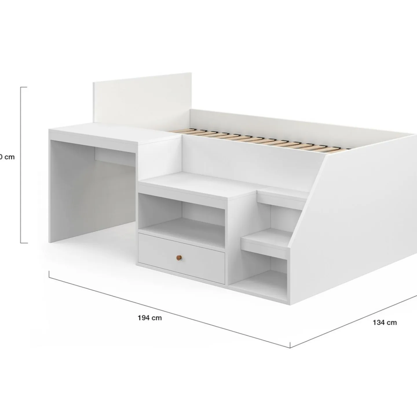 Dimensions du lit combiné avec sommier, bureau et rangements LEOPOLD 90 x 190 cm blanc