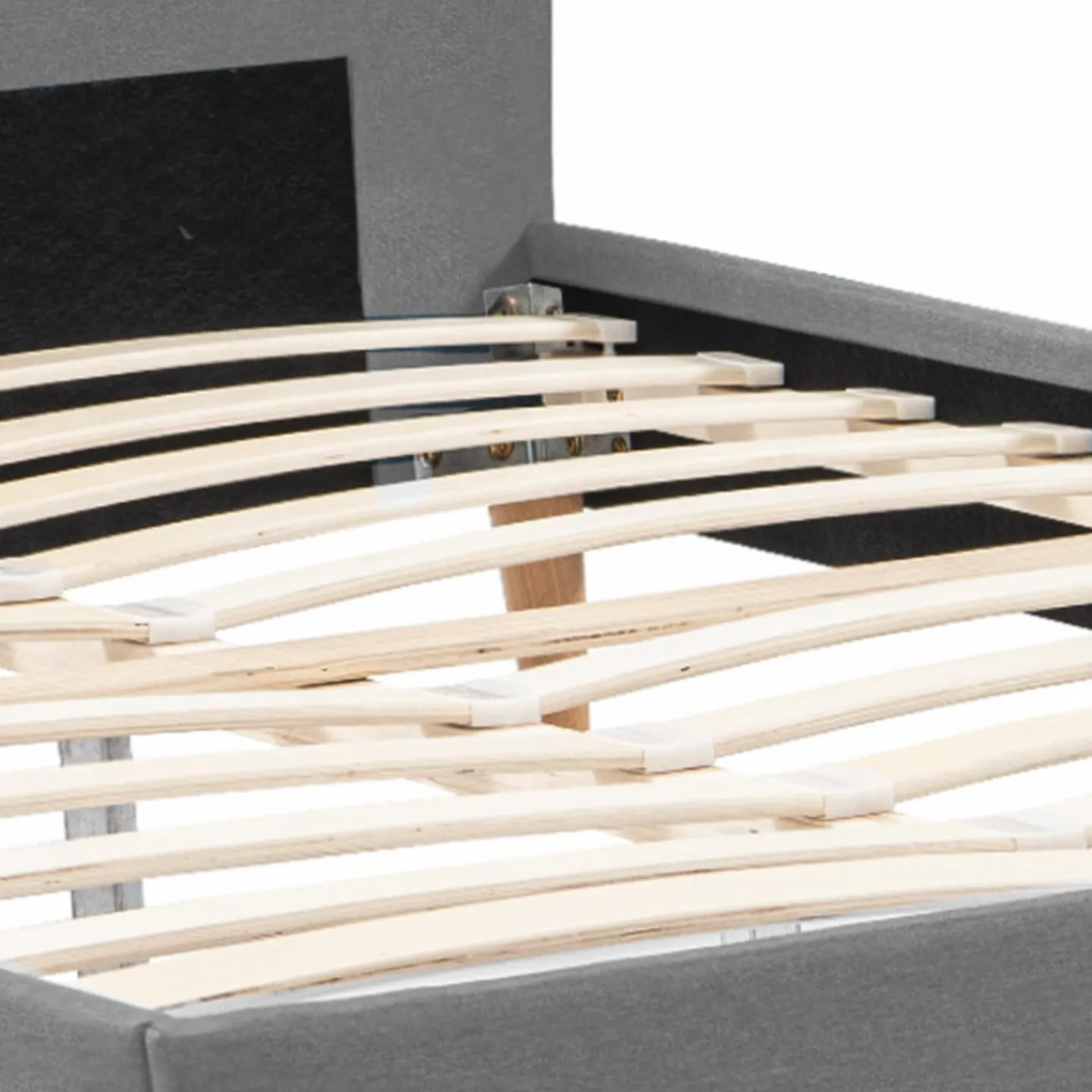 Enfin, ce superbe lit scandinave gris clair est doté d’une structure en bois MDF et deux pieds centraux de renfort en métal, pour plus de stabilité et de robustesse.