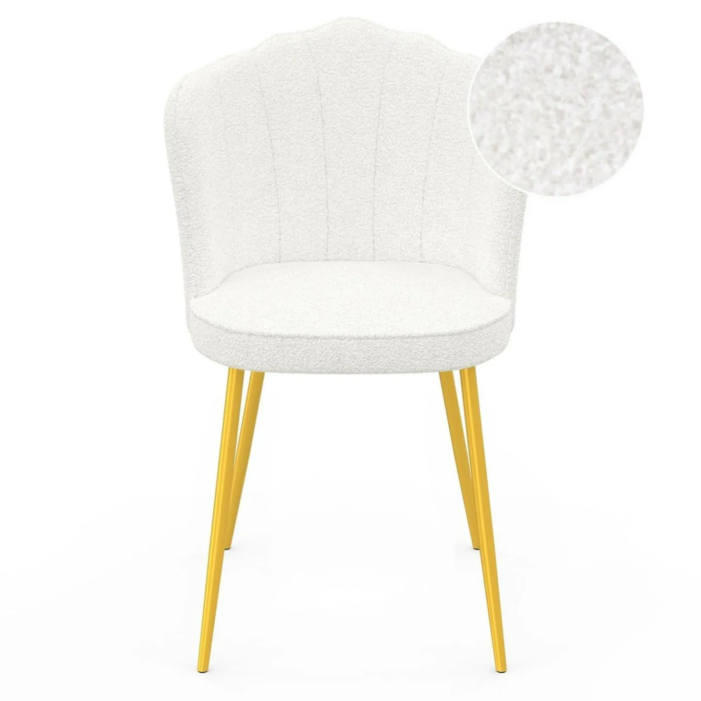 Lot de 2 chaises coquillage ADELAIDE bouclette blanche pieds dorés