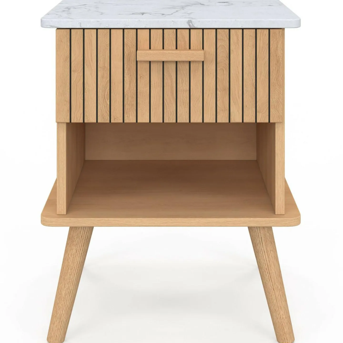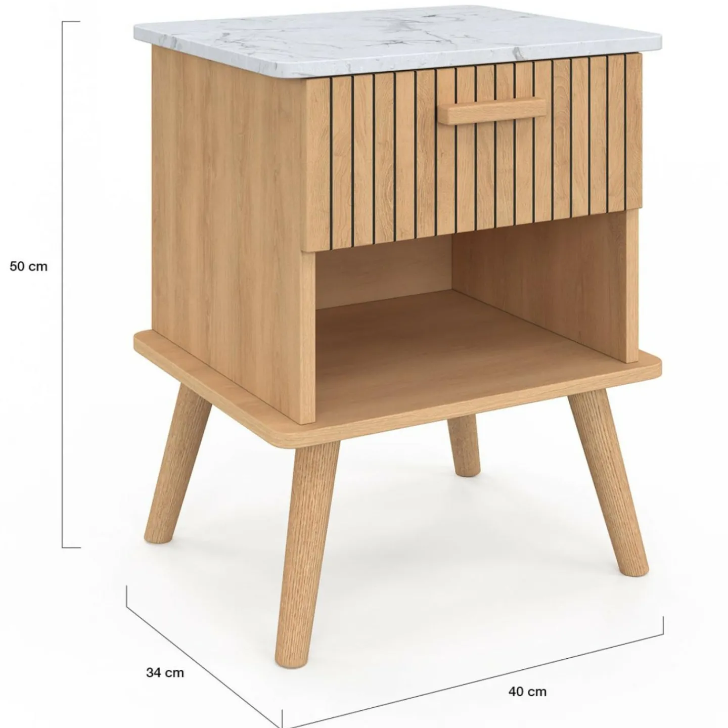 Lot de 2 tables de chevet JULIETTE plateau effet marbre 1 tiroir avec niche lattes tasseau bois