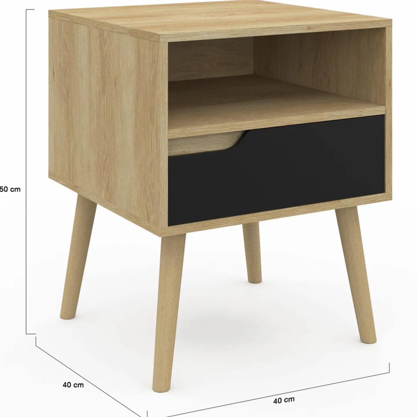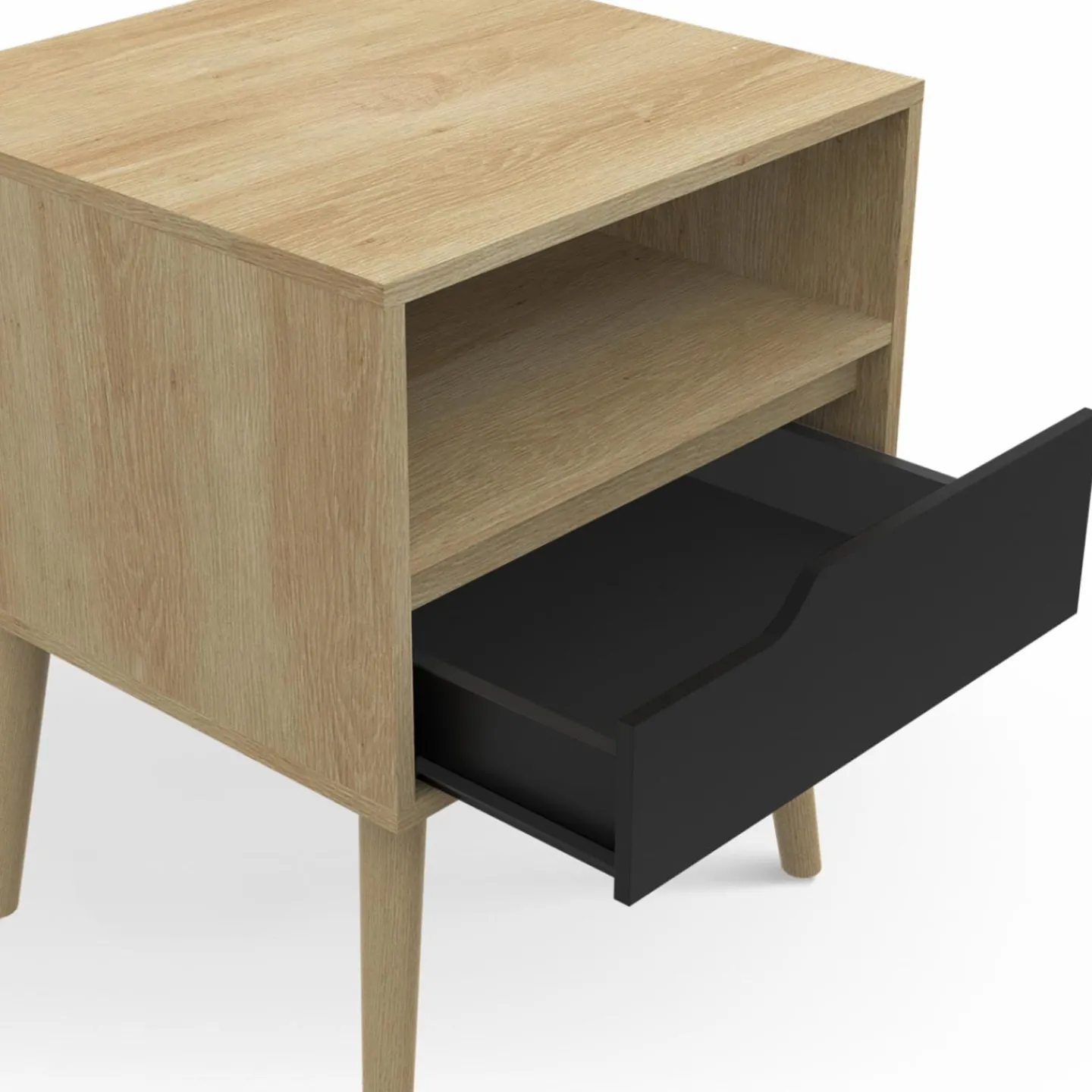 Lot de 2 tables de chevet HELSINKI scandinaves 1 tiroir avec niche effet hêtre et noir