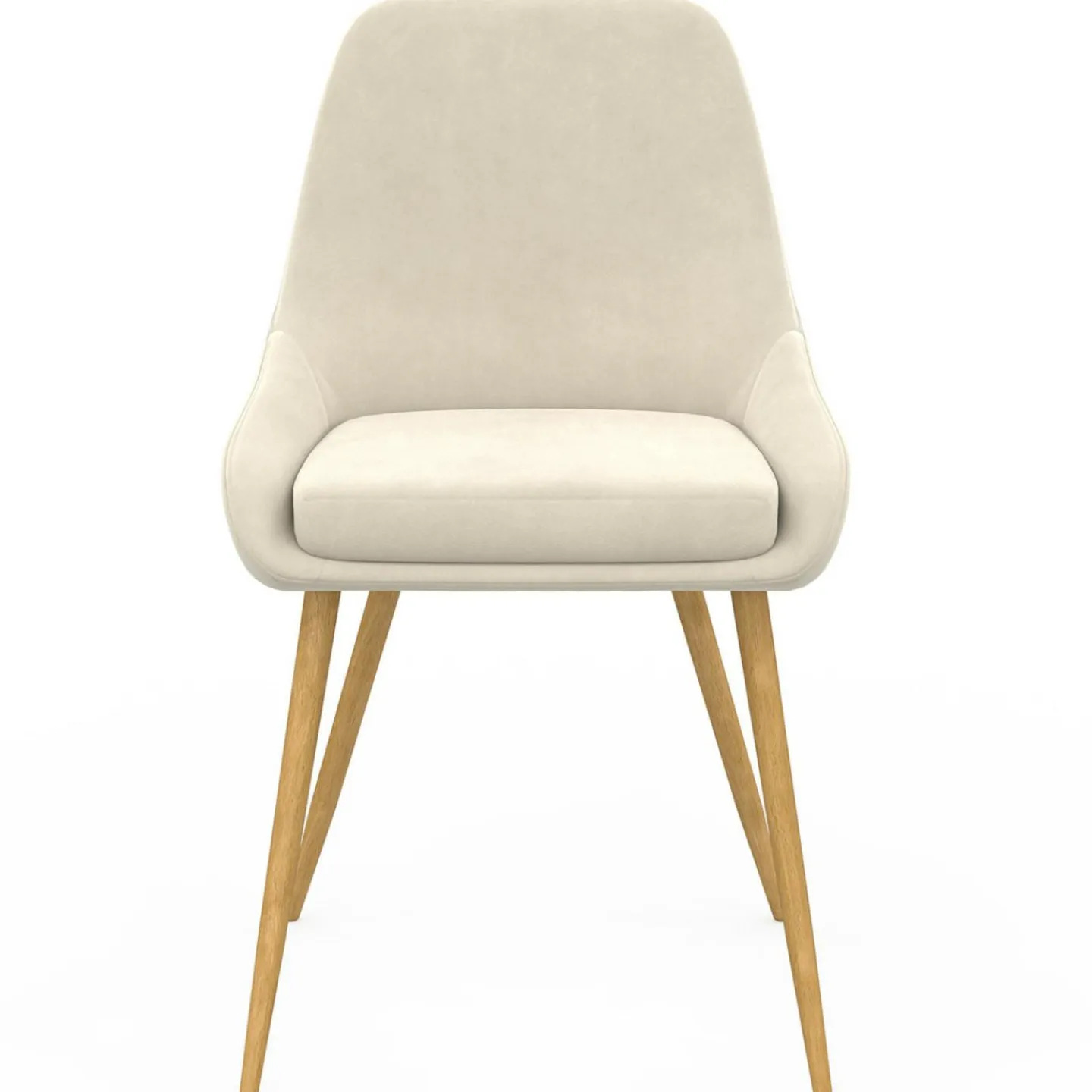 Les chaises design en velours beige et leurs pieds en métal effet bois apportent une touche moderne et naturelle à votre décoration. Vous pouvez aussi les utiliser séparément : une chaise velours dans la chambre ou un coin bureau donne instantanément du style.