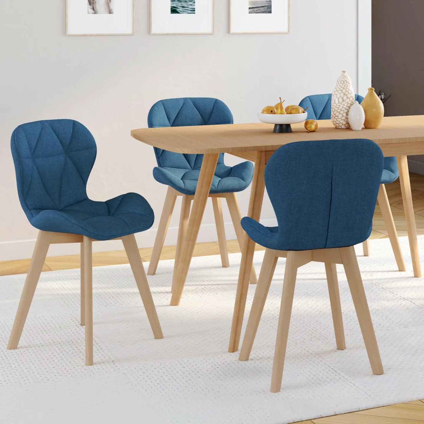 Lot de 4 chaises en tissu bleu canard design pour salle à manger*IDMarket Outlet