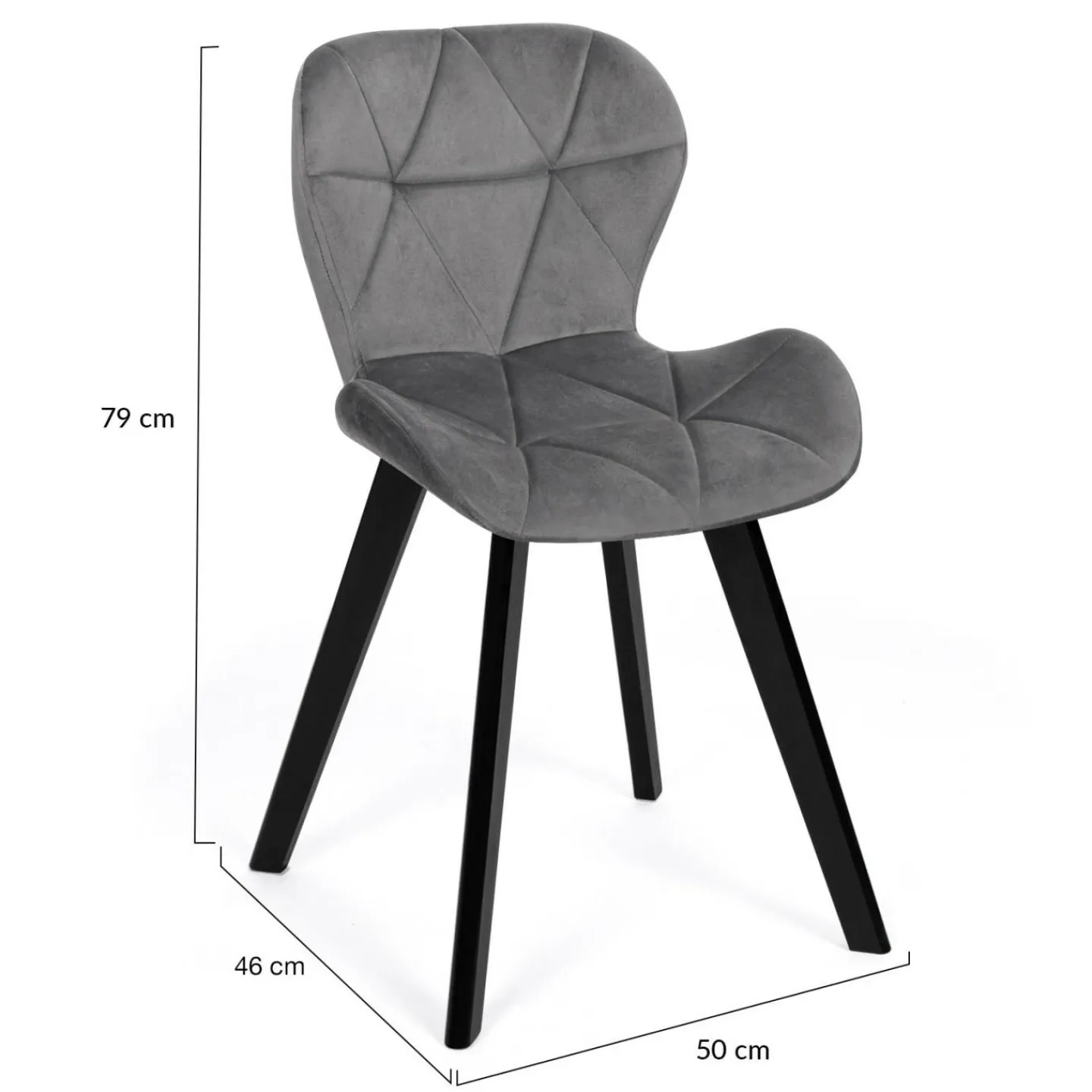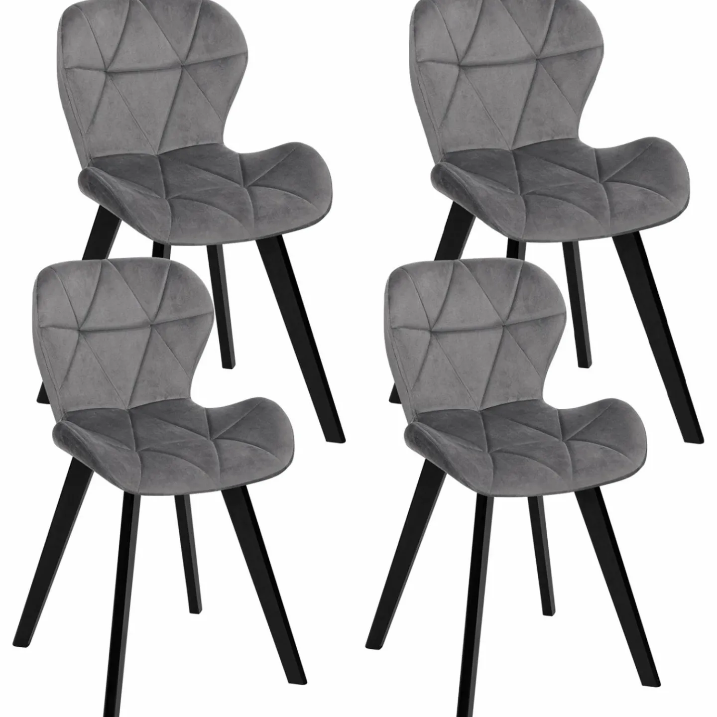 Lot de 4 chaises en velours gris clair avec pieds noirs assise matelassée*IDMarket Clearance