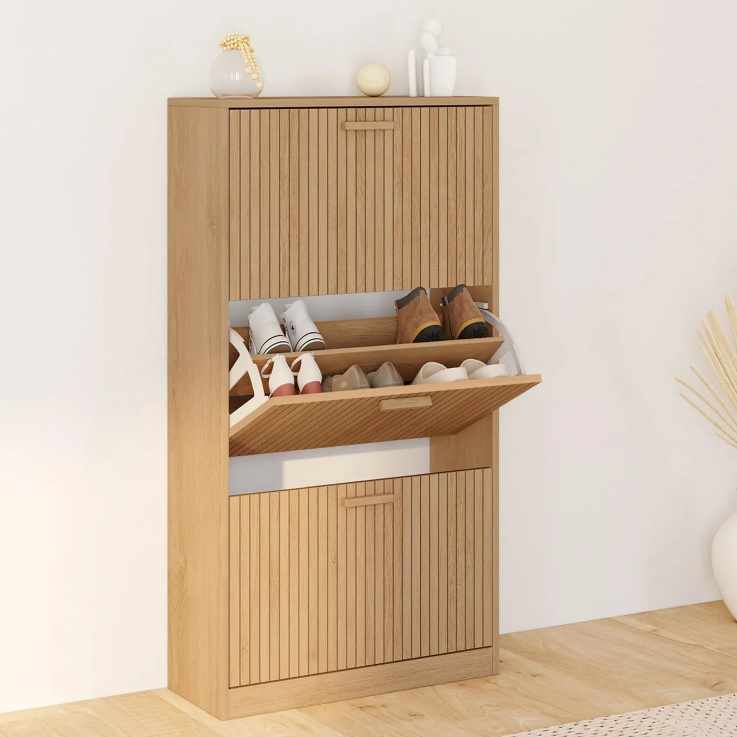 Be the first to review “Meuble à chaussures 18 paires 3 portes tasseau bois coloris chêne*IDMarket New”