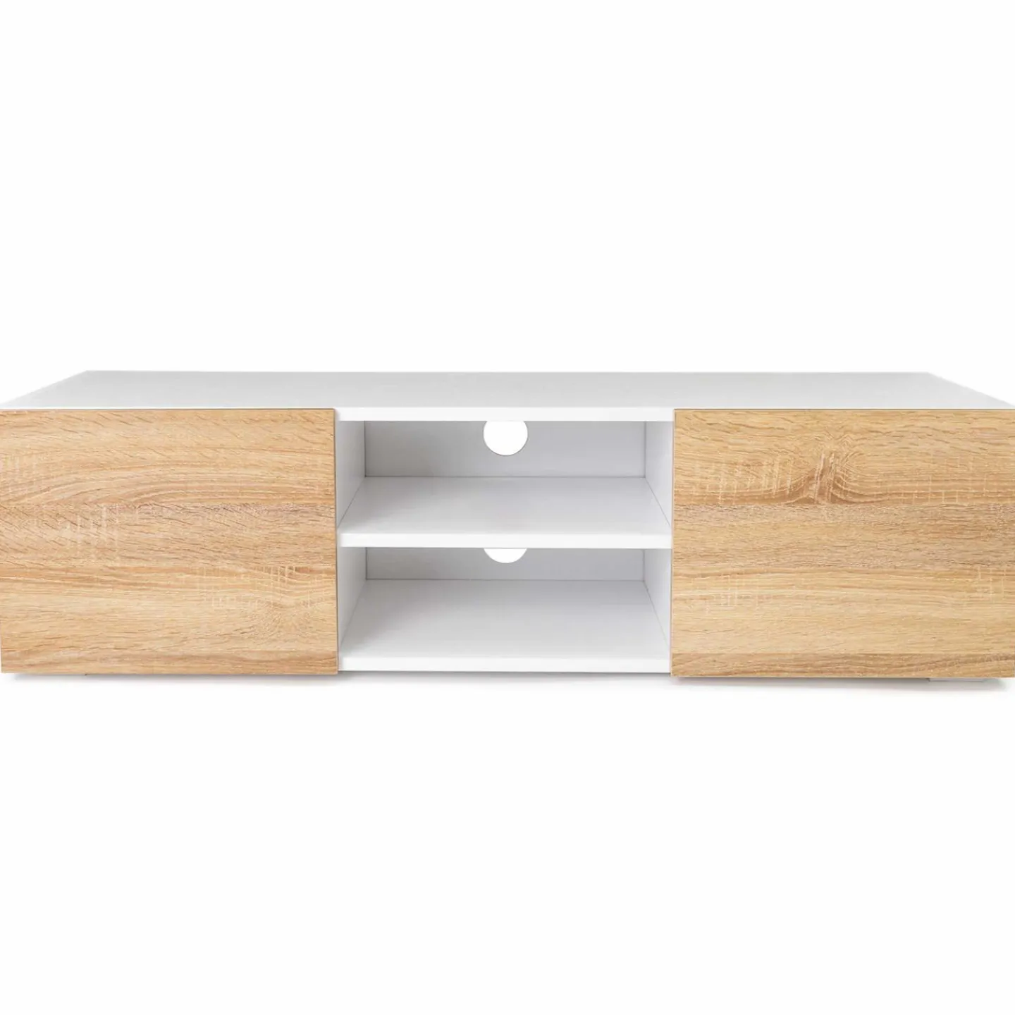 Meuble TV 113 cm ELI blanc portes façon hêtre